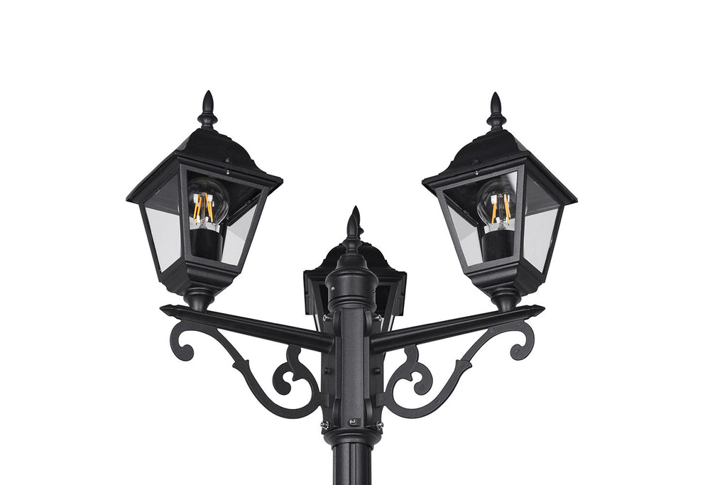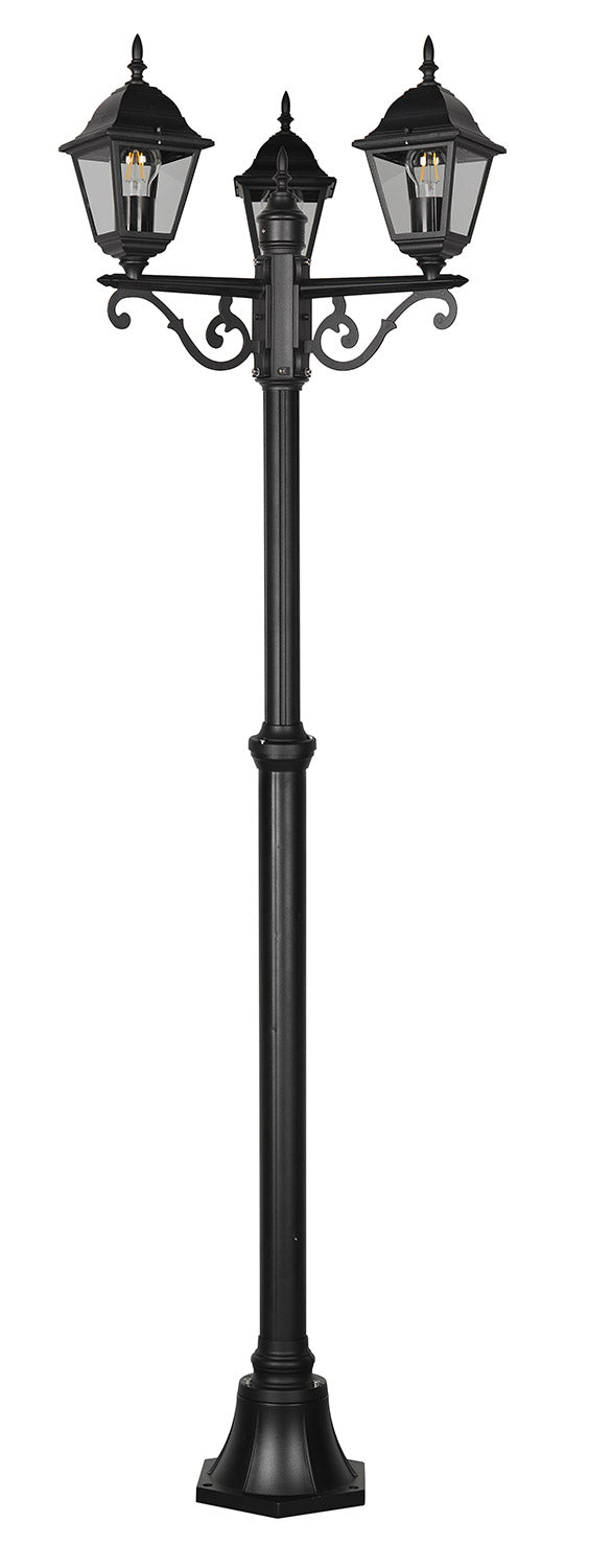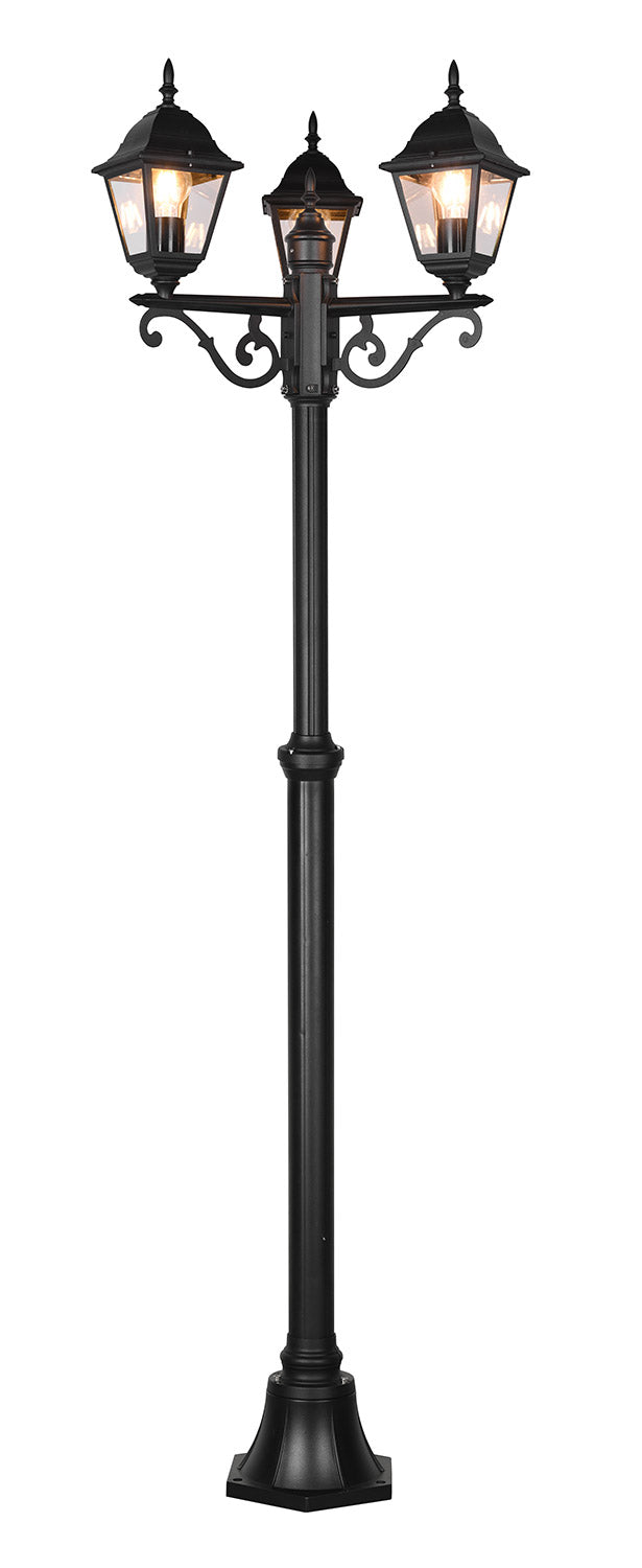 Livenza Palo Alto 3 Lanterne Da Esterno 4 Lati Fusione di Alluminio Nera e Vetro Trasparente H. 200Cm Ip44