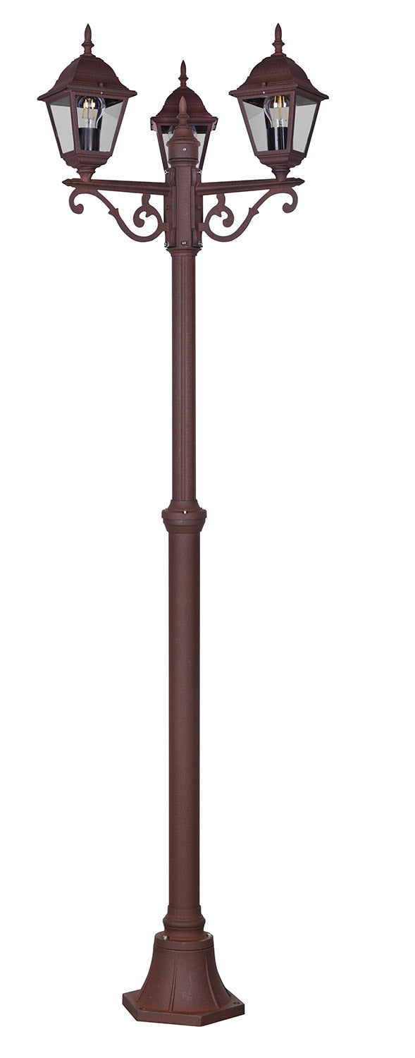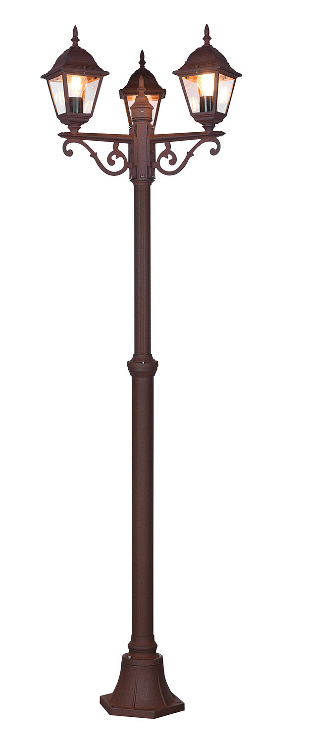 Livenza Palo Alto 3 Lanterne Da Esterno 4 Lati Fusione di Alluminio Ruggine e Vetro Trasparente H. 200Cm Ip44