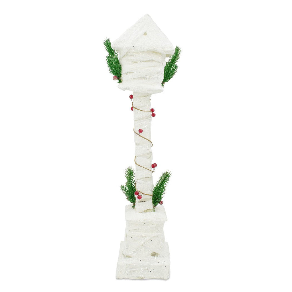 Lampione di Natale 60H cm ad intreccio bianca con glitter e minilucciole