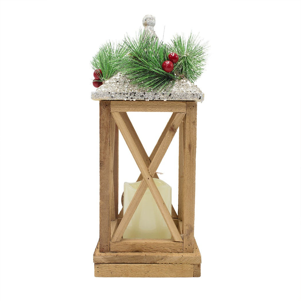 Lanterna con lumino di Natale in legno con luce led e glitter