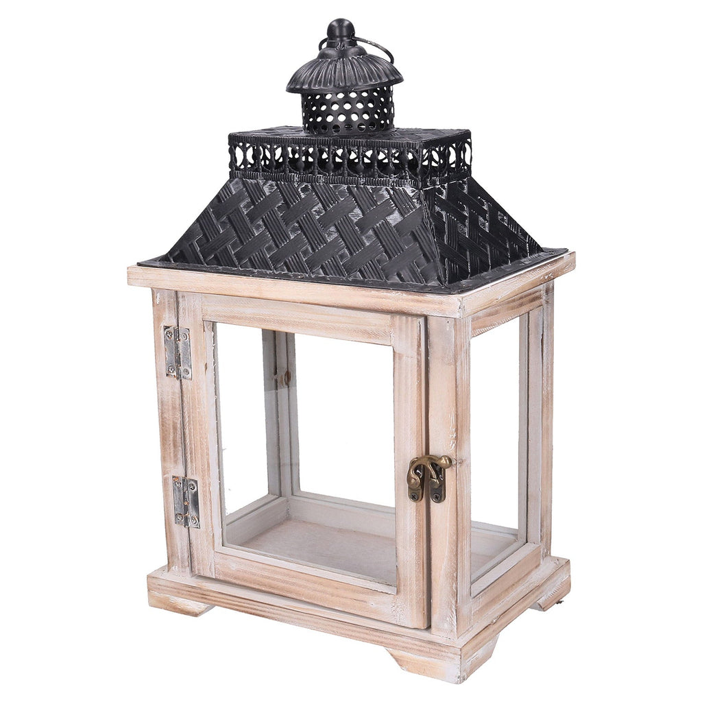 - Lanterna in legno sbiancato rettangolare con tetto nero cm 24x16xh39