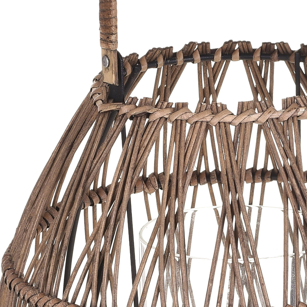 Lanterna In Rattan Intrecciato. Altezza H 32 Cm