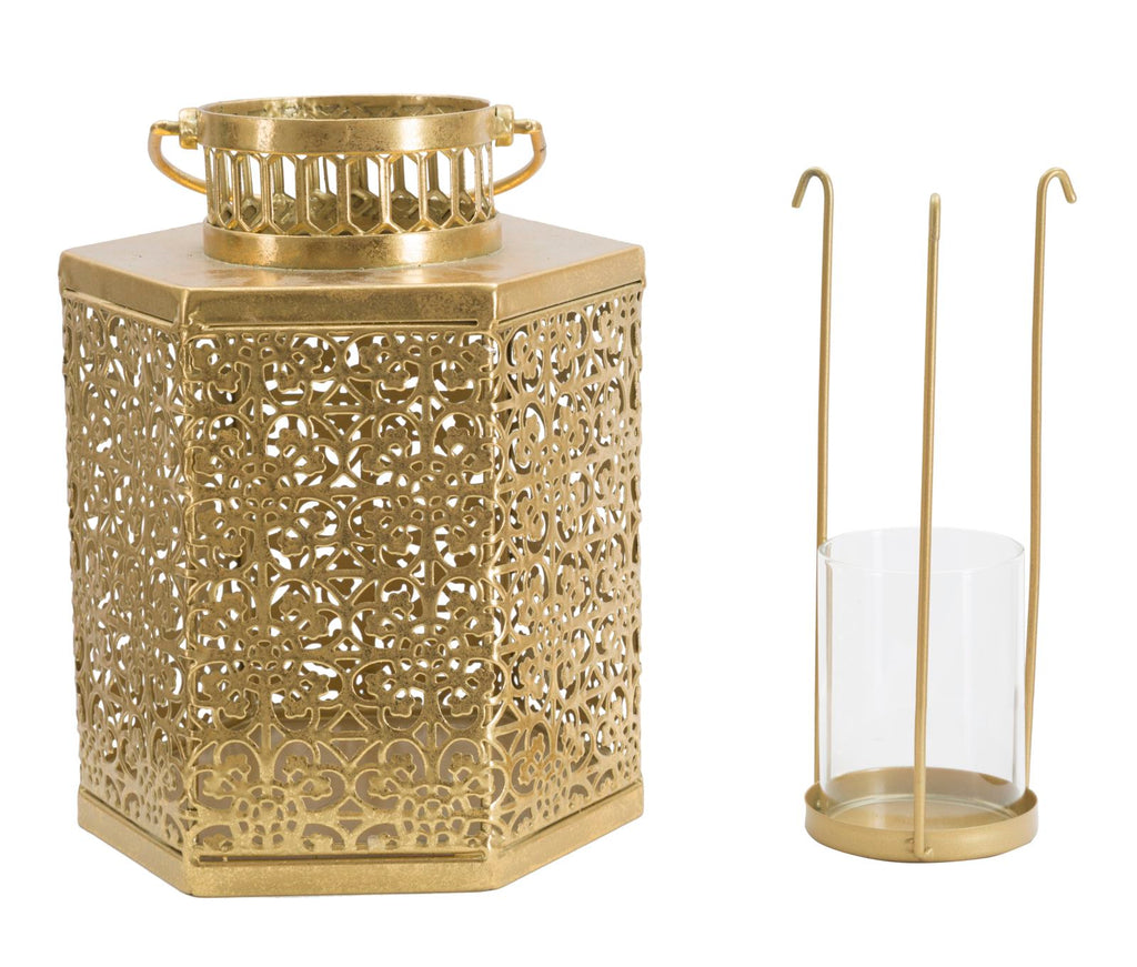 Lanterna Oroy 20x17x26 cm in Ferro e Vetro Oro