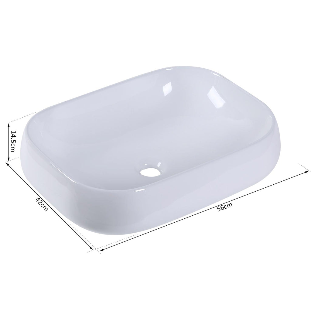 Lavabo da Appoggio Rettangolare in Ceramica Smaltata Bianco 56x42x14.5 cm