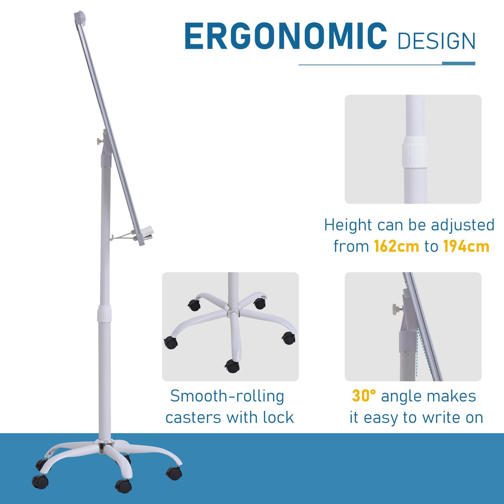 Lavagna Magnetica 62x60x194 cm con Ruote e Accessori Bianca