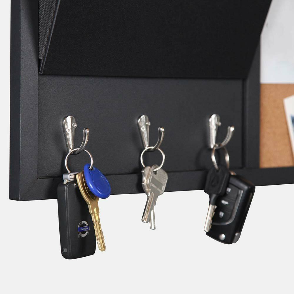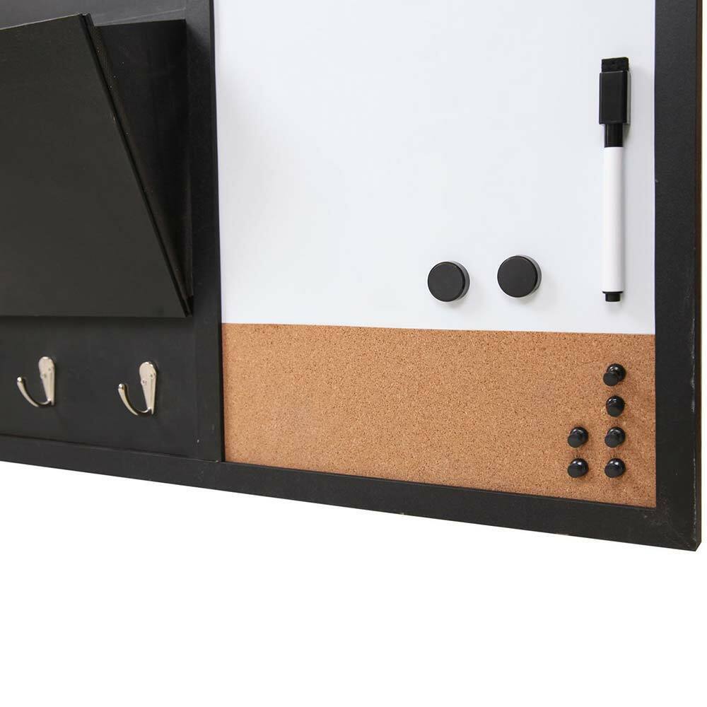 Questa fantastica Bacheca è super accessoriata! da una parte possiamo trovare una partica lavagna magnetica con sezione in sughero e dall'altra una lavagna nera dotata di scomparto portadocumenti e di 3 ganci portachiavi in questo modo avrai sempre tutto a portata di mano prima di uscire, dai tuoi impegni giornalieri alle cose da portare con te.