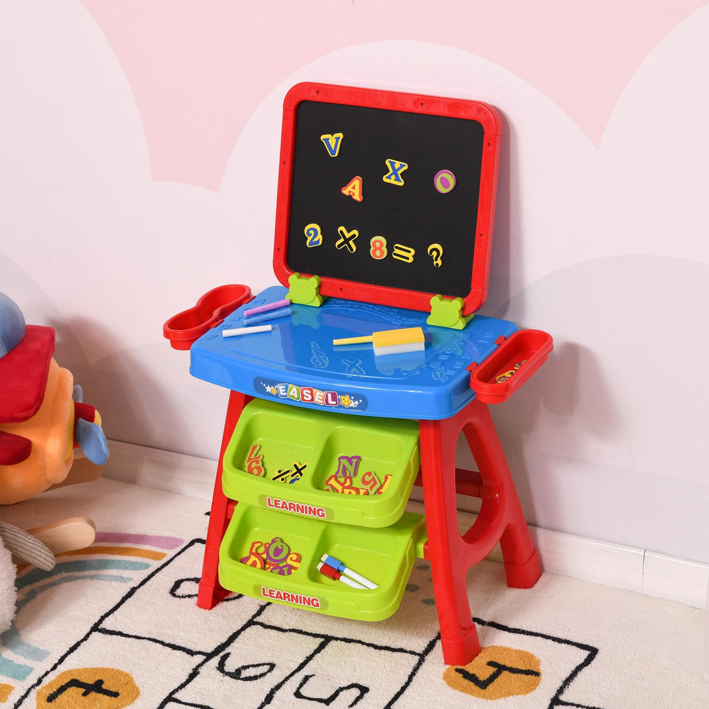 Il banco con lavagna multifunzione per bambini proposto da è un gioco educativo perfetto per stimolare la voglia di imparare dei più piccoli. La lavagnetta ha 2 lati, uno per scrivere con i gessetti e l'altro adatto per i pennarelli e dotato di superficie magnetica. I numeri e le lettere magnetiche inclusi sono perfetti per iniziare a imparare l'alfabeto e giocare con la matematica. Sono presenti 6 contenitori per tenere in ordine tutto il necessario mentre il ripiano del banco offre spazio per disegnare e giocare. Fai un regalo divertente ed educativo ai tuoi bimbi!