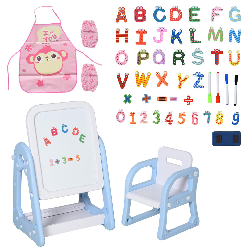 Lavagna Magnetica per Bambini con Sedia Numeri Lettere Bianca e Blu