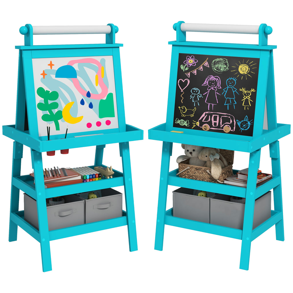 Lavagna per Bambini 3 in 1 con Cavalletto 59x48x118 cm Blu