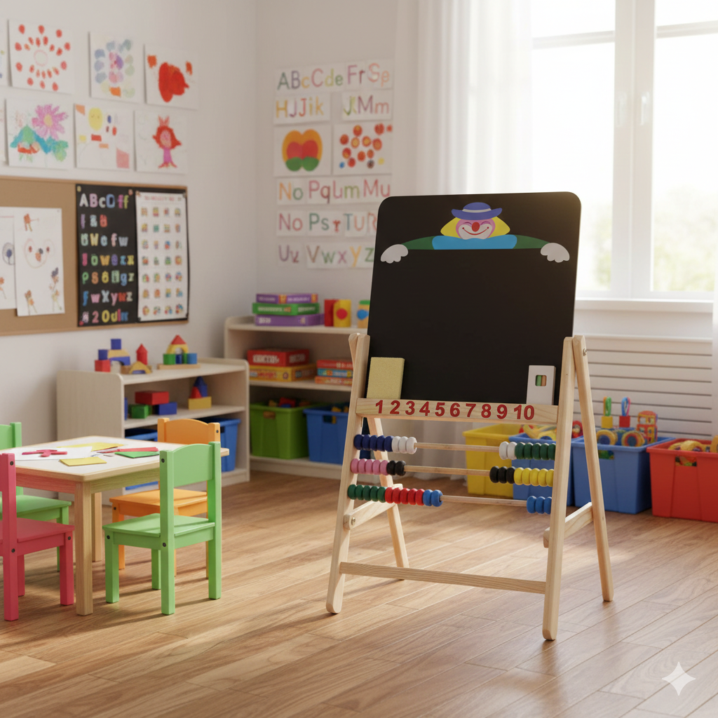 Lavagna per Bambini con Cavalletto e Pallottoliere in Legno H69 Kids Joy Gioca e Scrivi