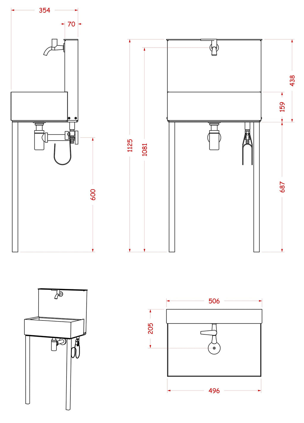 Lavandino con Doppio Rubinetto principale in ottone cromato a sfera antigelo con maniglia in tinta fontana, il secondo in ottone cromato a sfera con uscita attacco gomma rapido. Sifone cromato compreso.