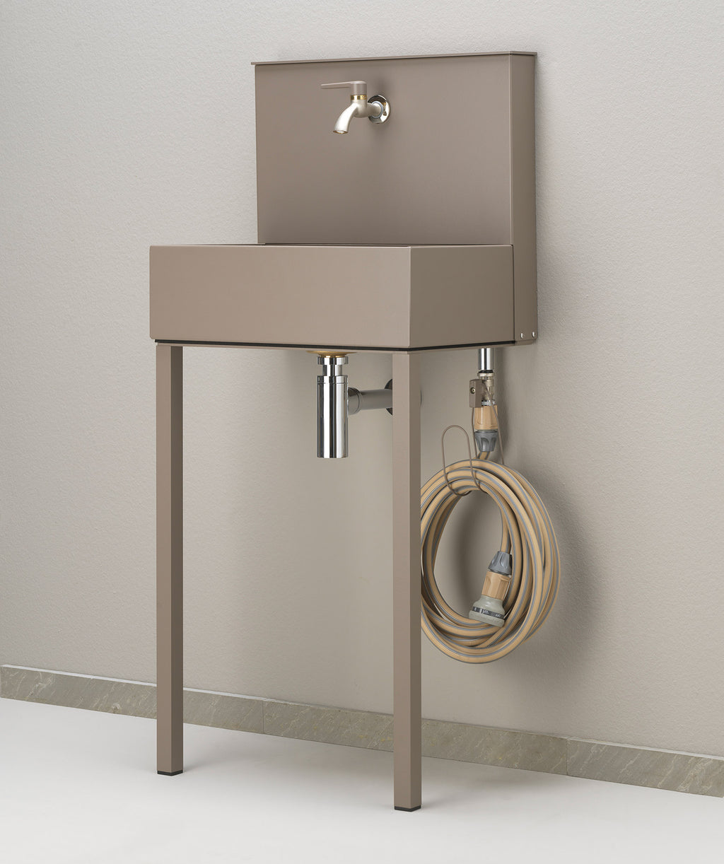 Lavandino a Parete da Giardino con Doppio Rubinetto 50x36x112 cm Belfer 42/PRL Tortora