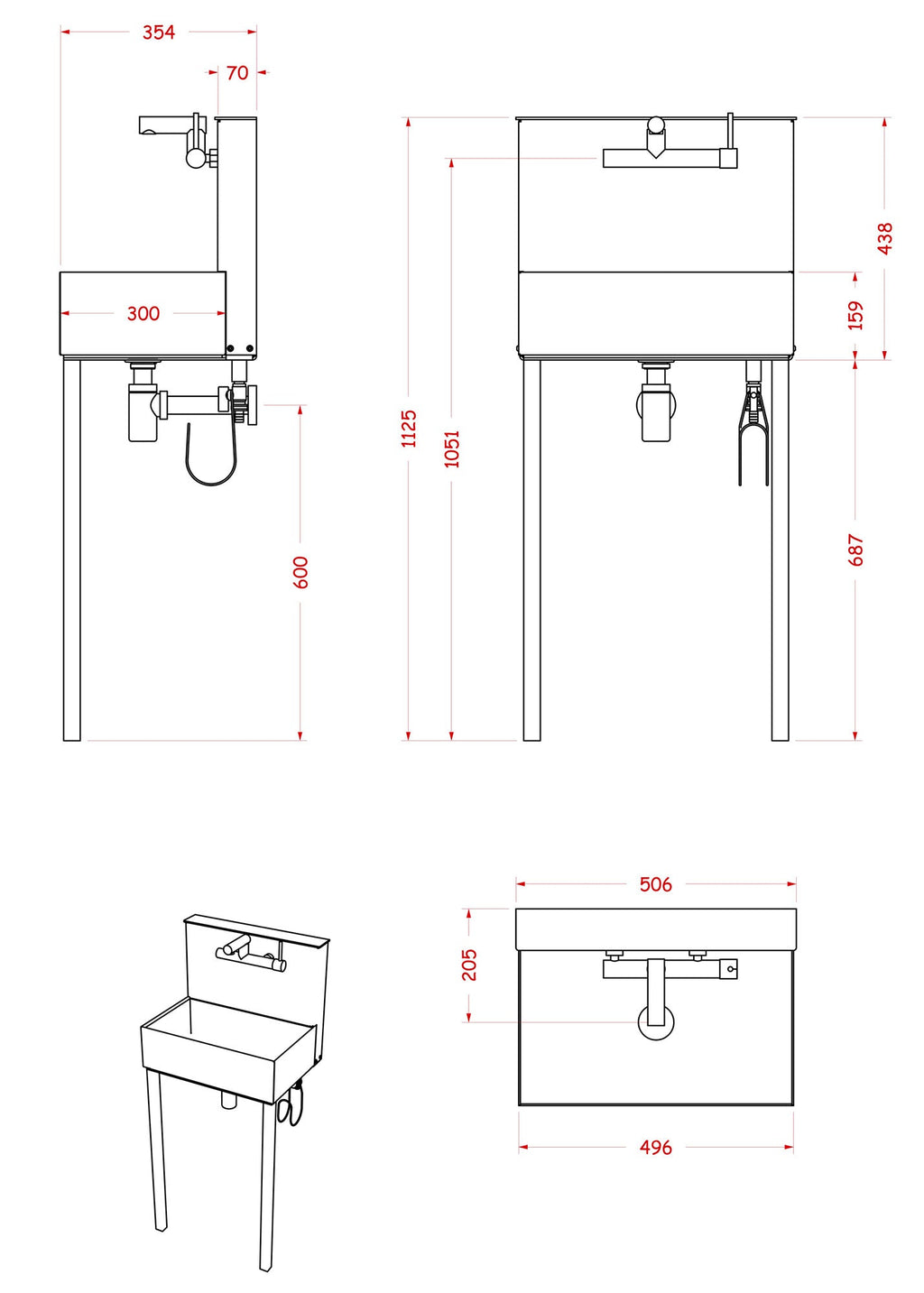 - Miscelatore e Doppio Rubinetto: principale miscelatore in ottone cromato, uscita con aeratore a risparmio idrico (20 litri/minuto), Secondario in ottone cromato a sfera con uscita attacco gomma rapido