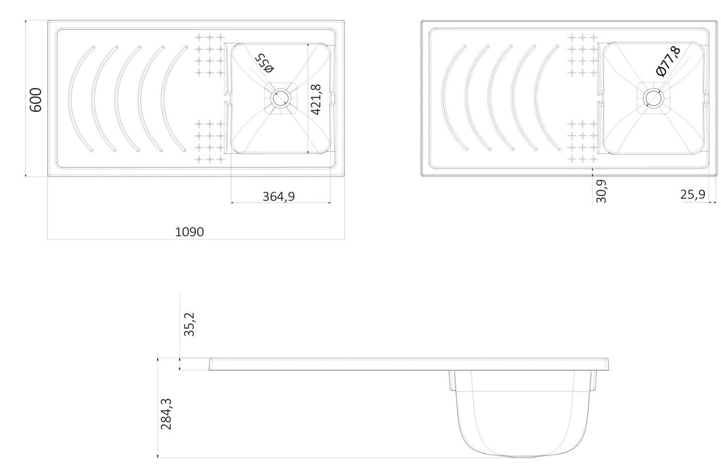 - Vasca forabile per installazione rubinetto (rubinetto non incluso)