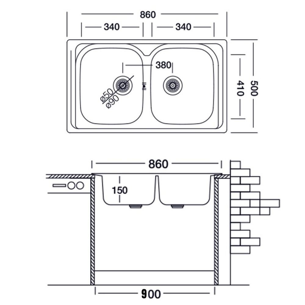 Lavello 86x50 2 vasche.