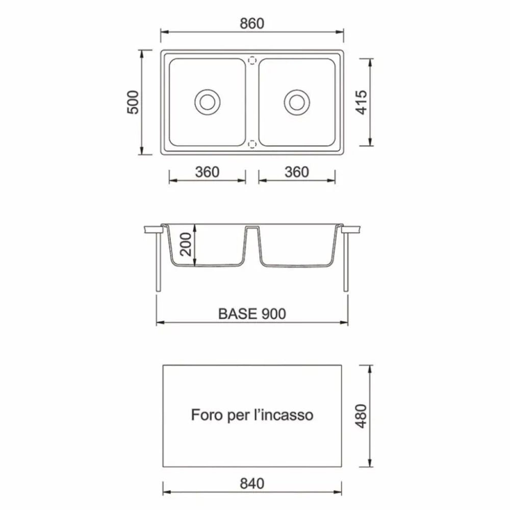 - Misure vasca 415x360x200 mm