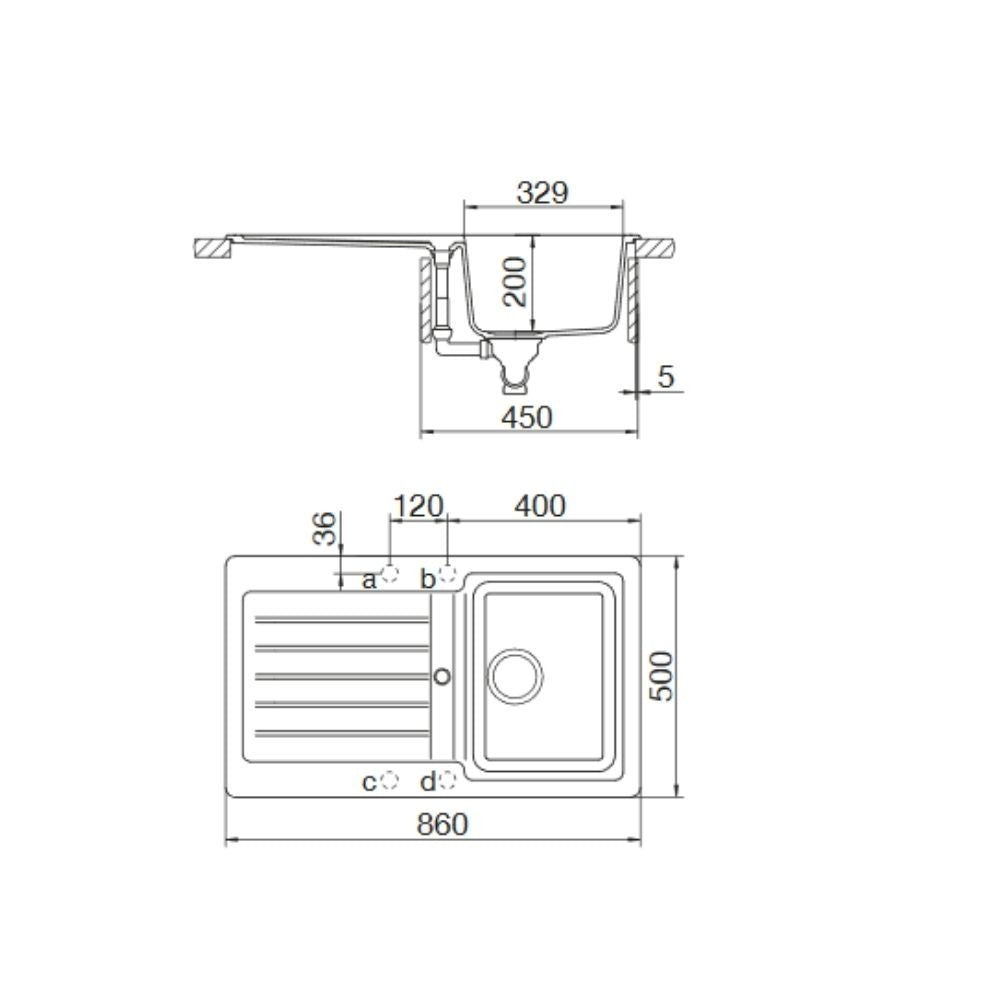Lavello 86x50 cm reversibile 1 vasca gocciolatoio croma Samet