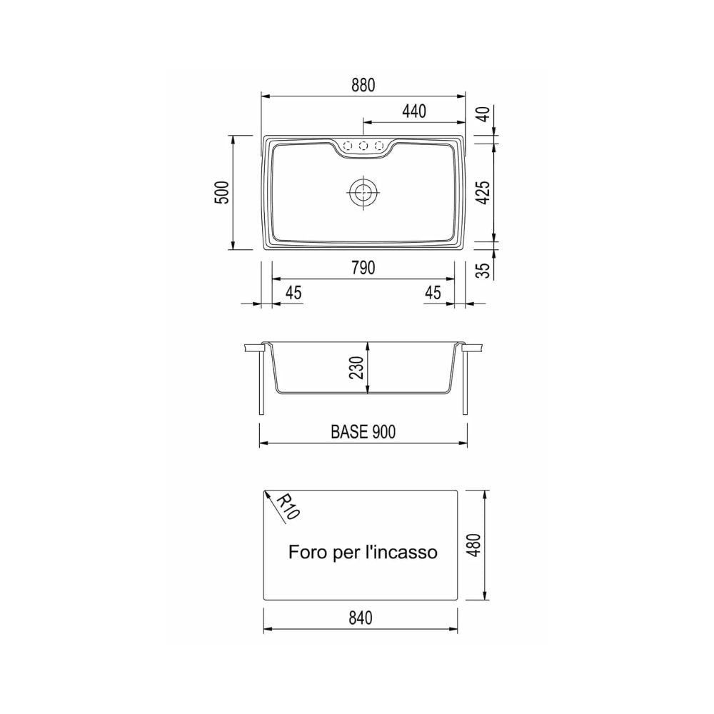 Samet Lavello 88x50 Granito Vasconenr 1 vasca nero.