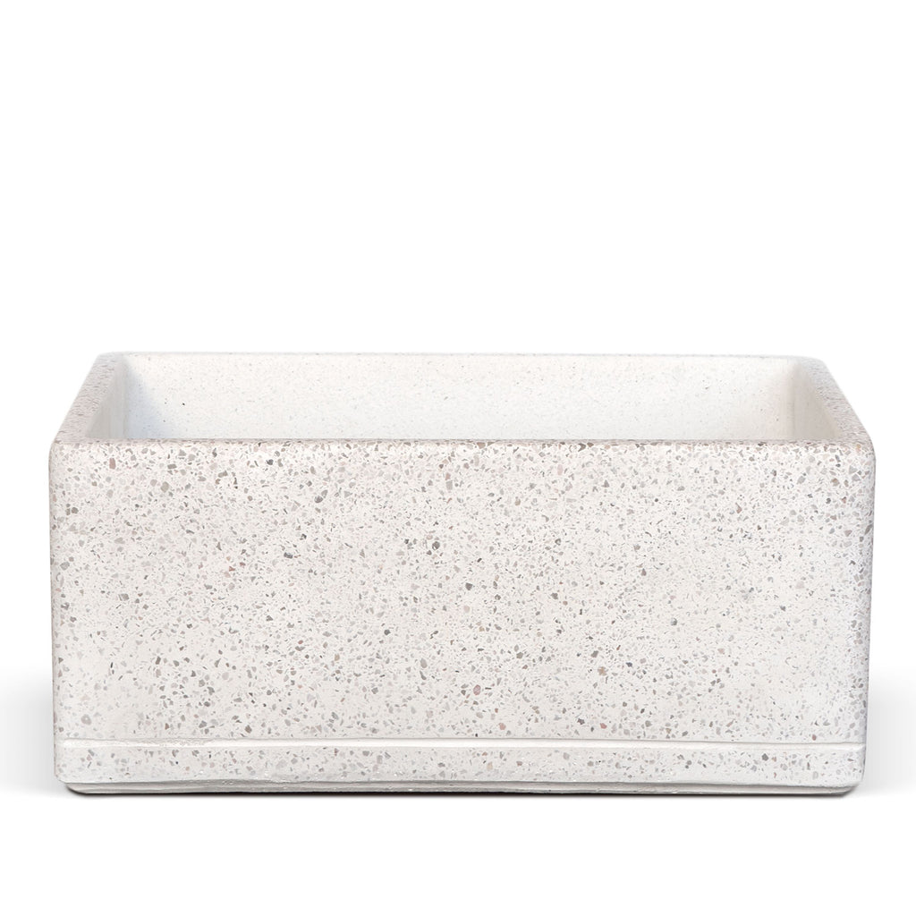 Lavello da Giardino Senza Rubinetto 45x30x20 cm in Cemento e Granulati di Marmo Rodi-TZ Bianco Terrazzo