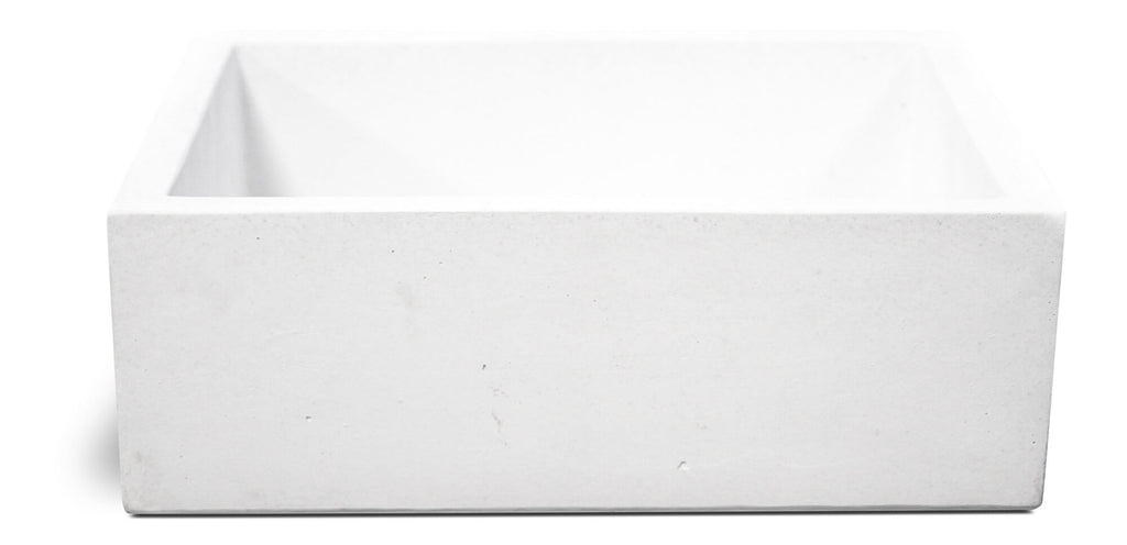 Lavello moderno in cemento e granulato di marmo Il design lineare e geometrico del lavello Madrid, rispecchia le linee contemporanee delle nuove costruzioni, la superficie in calcestruzzo liscio ne esalta lèautentica matericitè. Realizzato in cemento bianco e granuto di marmo. Prodotto 100% Made in Italy