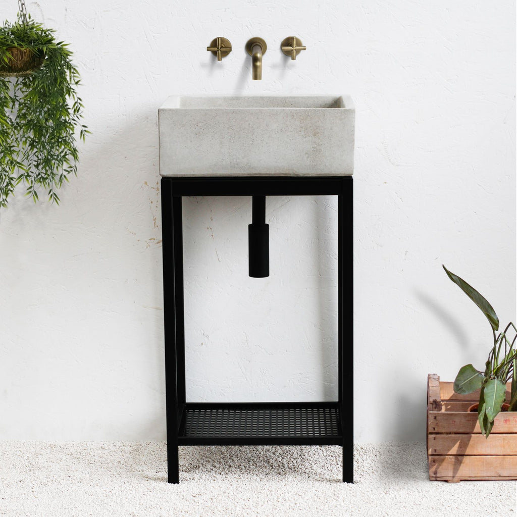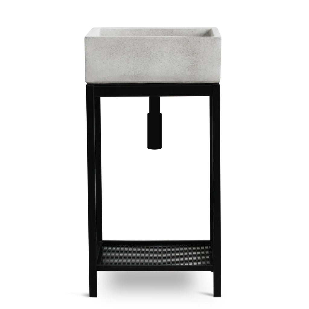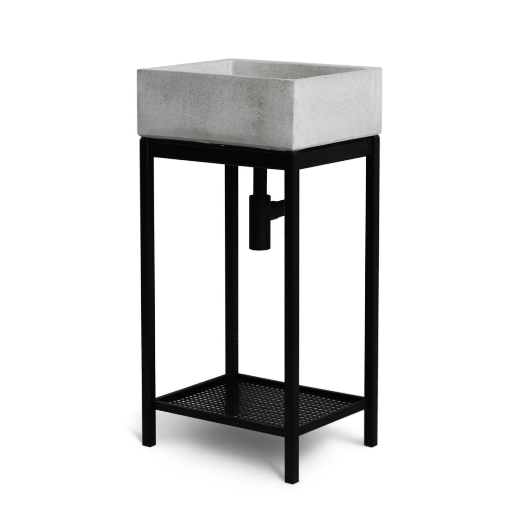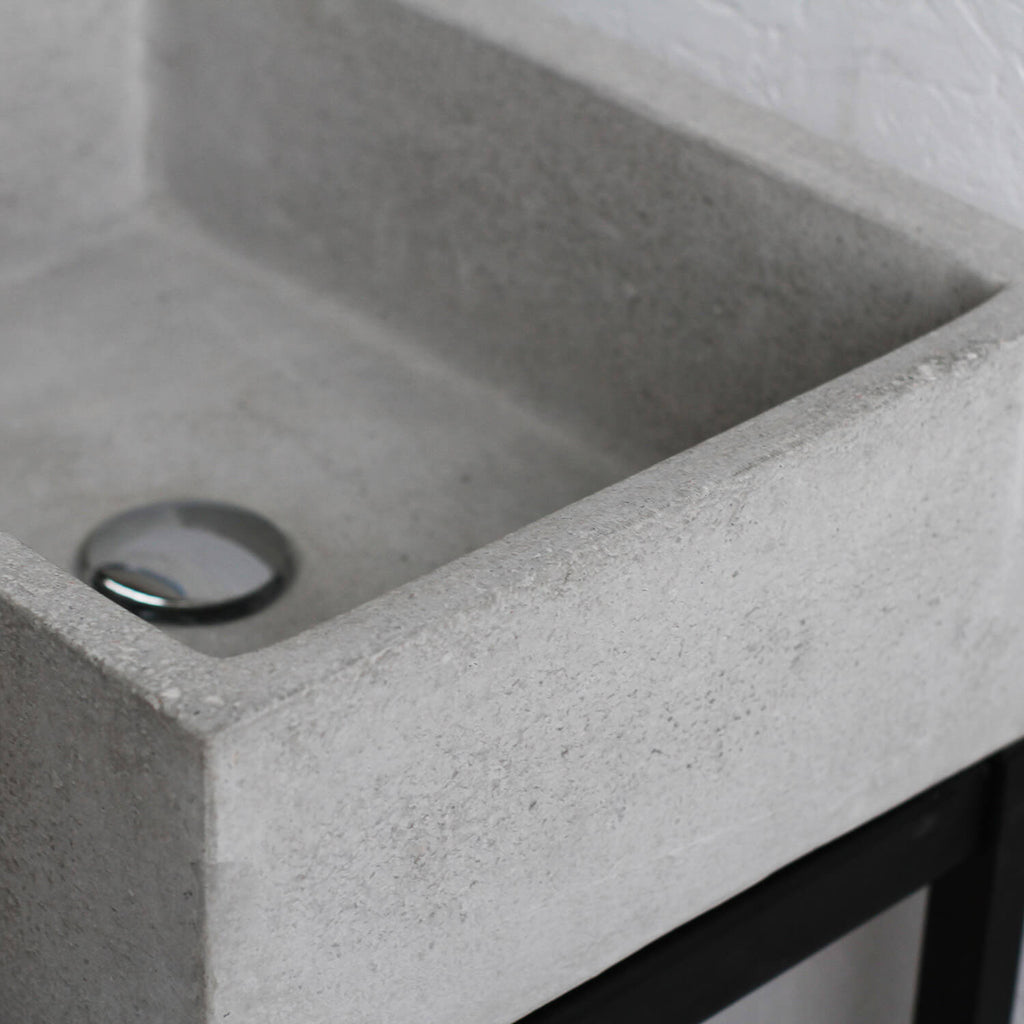 Lavello moderno in cemento e granulato di marmo. Il design lineare e geometrico del lavello Madrid, rispecchia le linee contemporanee delle nuove costruzioni, la superficie in calcestruzzo liscio ne esalta l'autentica matericità. Realizzato in cemento grigio e granulato di marmo. Lavello completo di supporto modello Sup.ponimi in acciaio, zincato e verniciato a polvere, con un comodo ripiano. La struttura può essere fissata alla parete tramite due fori nel telaio. Prodotto 100% Made in Italy