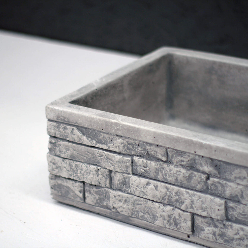 Lavandino in cemento Il lavello in pietra ricostruita per giardino, Modello Meseta XL, è resistente e leggero. Infatti pesa solo 32 kg. Realizzato in cemento bianco e granuto di marmo, anticatura grigio.