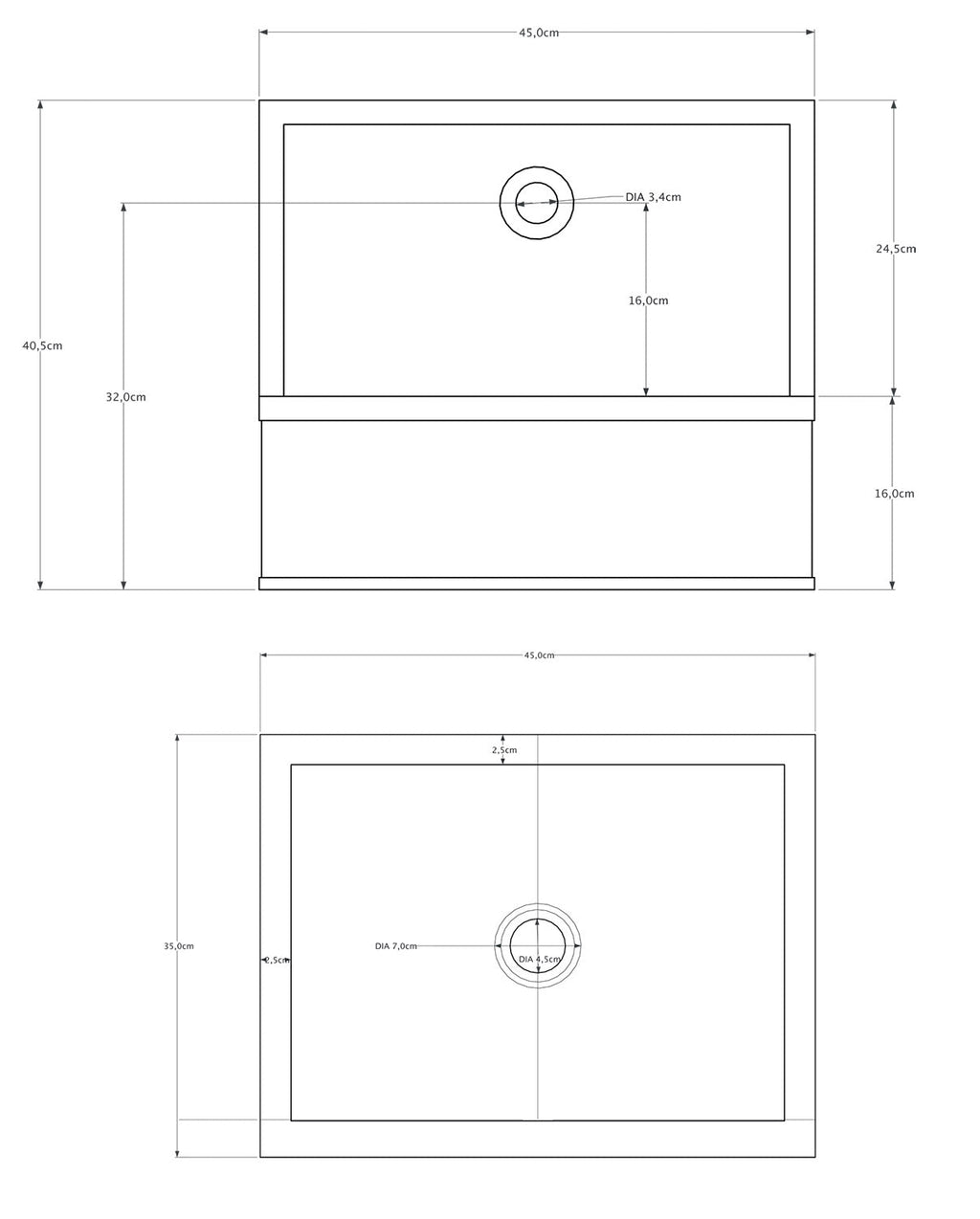 - Interno vasca:40x29,5x13,5