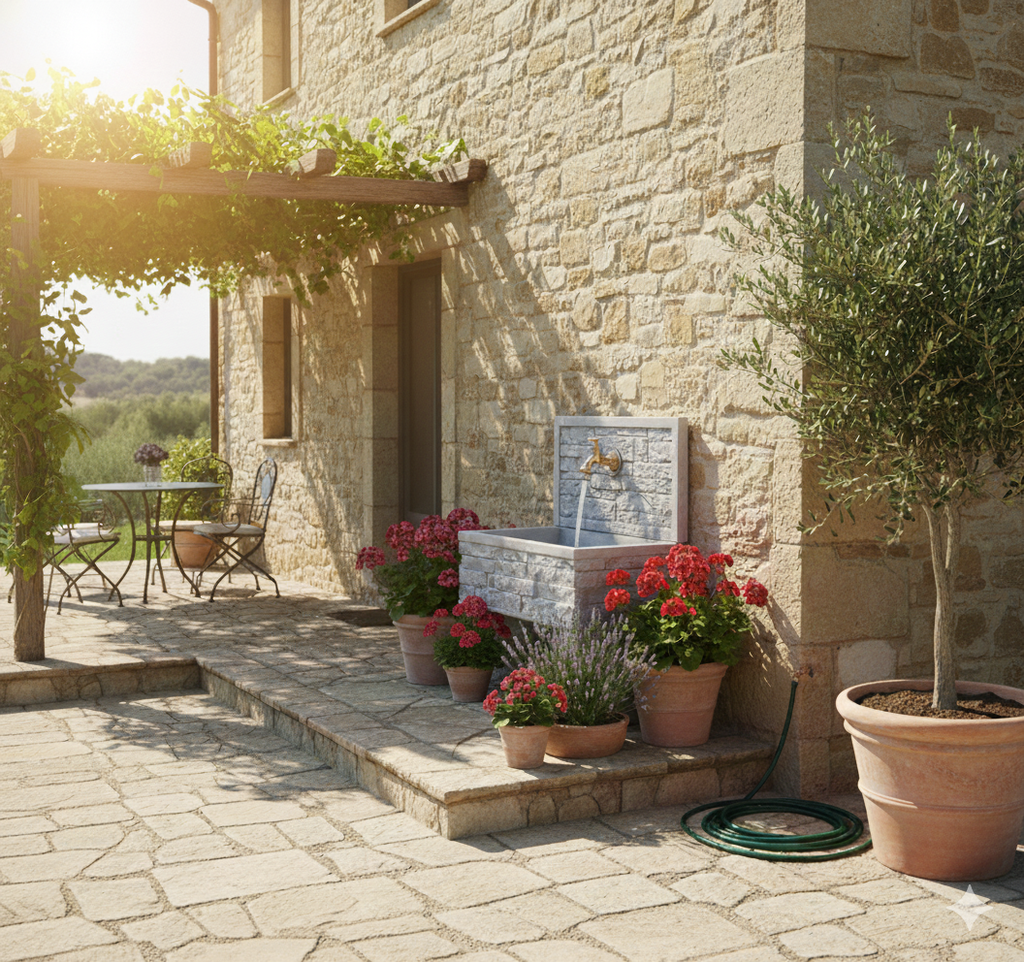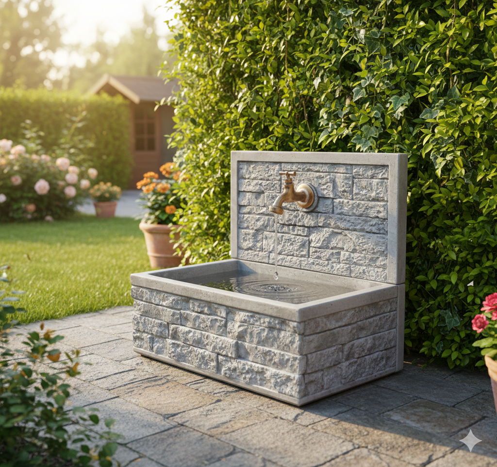 Lavello da Giardino Senza Rubinetto in Cemento Granulato di Marmo Q-Meseta Grigio