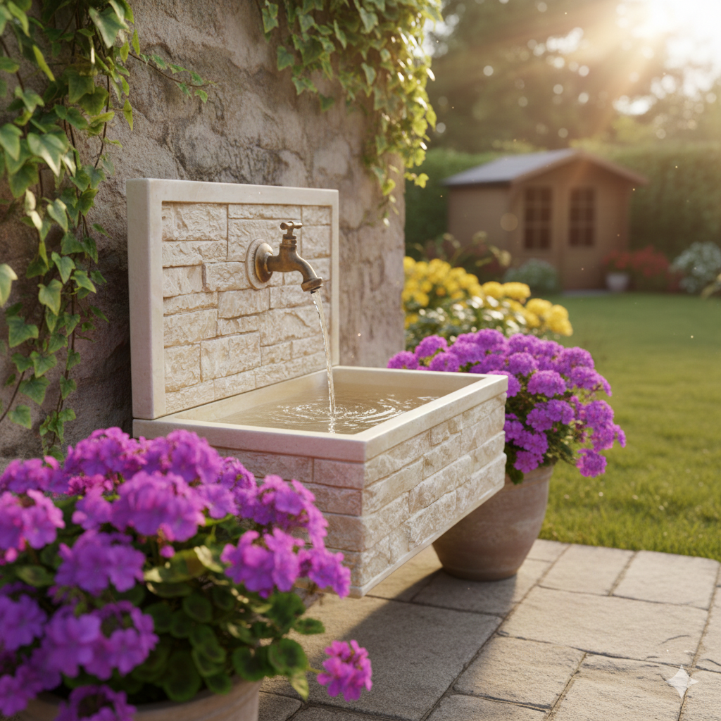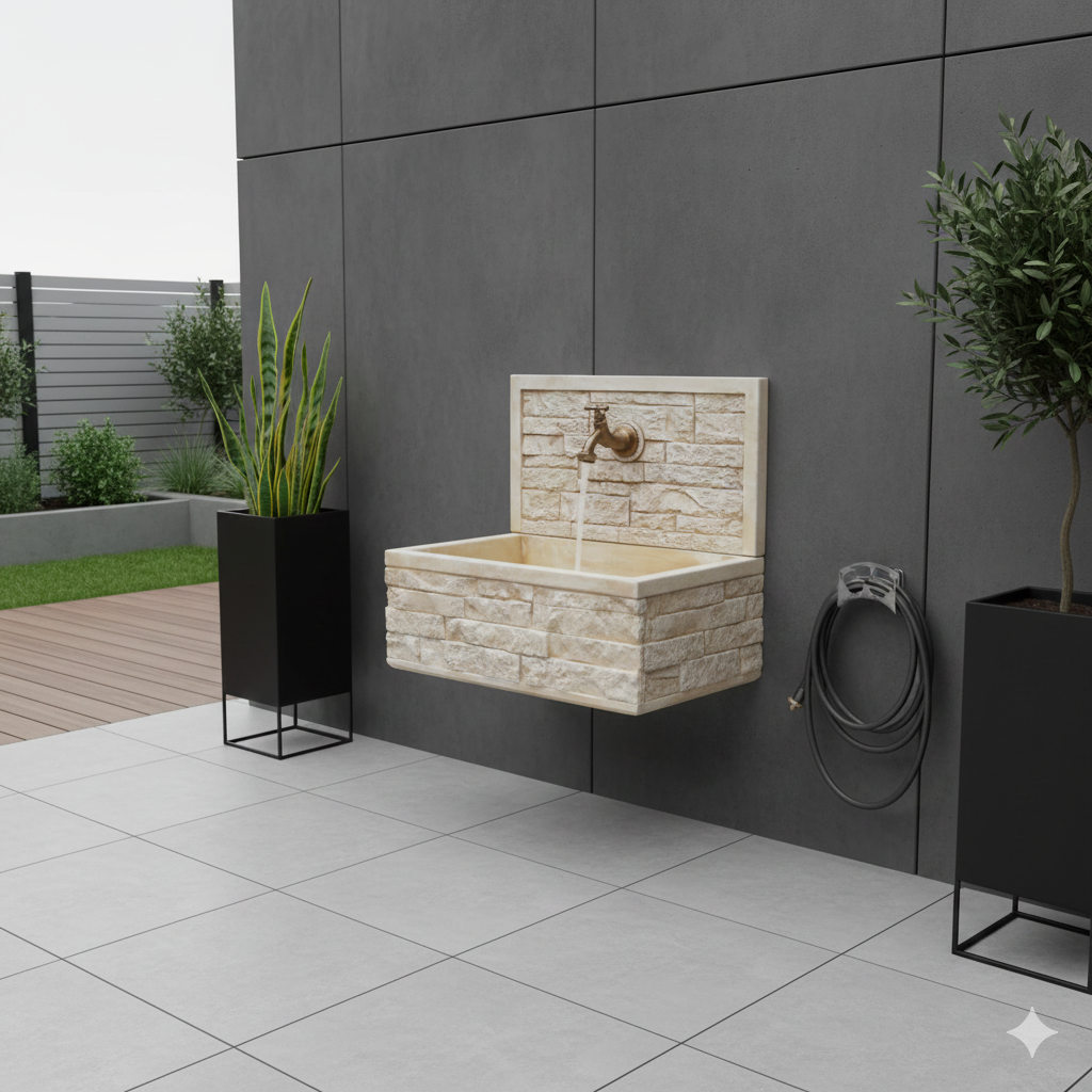 Lavello da Giardino Senza Rubinetto in Cemento Granulato di Marmo Q-Meseta Nocciola