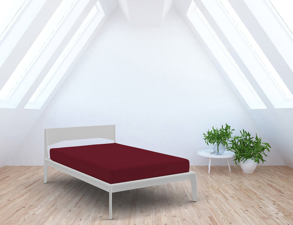 Lenzuolo Sotto con Angoli ed Elastico Tinta Unita Bordeaux Varie Misure