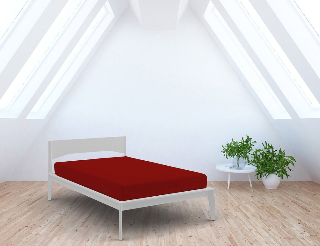 Lenzuolo Sotto con Angoli ed Elastico Tinta Unita Rosso Varie Misure