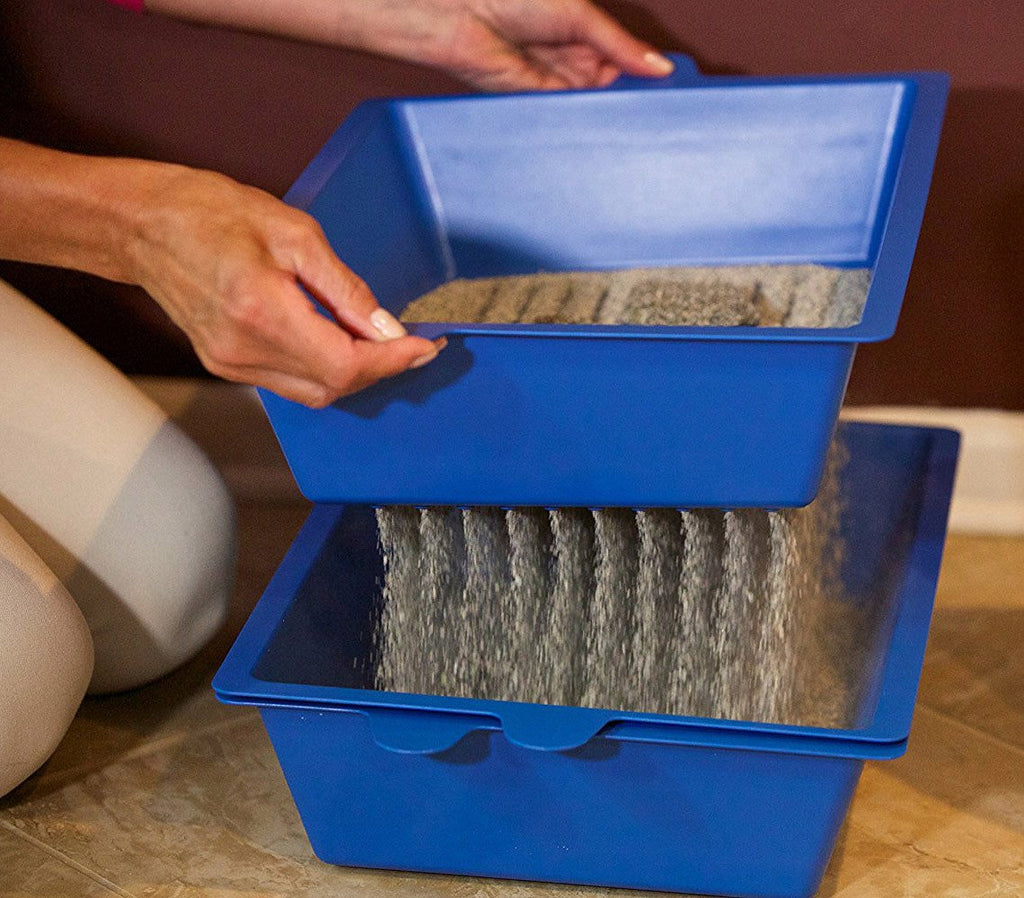 Con questa pratica lettiera pulire i bisogni del proprio gatto diventerà un'operazione veloce e semplice. Le tre vaschette sono praticamente identiche ma una volta alternate a 180° creano un sistema ad incastro completamente impermeabile. Per pulire i bisogni del gatto basterà sollevare sempre la vaschetta superiore che grazie al suo design permetterà di travasare la sabbia pulita alla prossima vaschetta e bloccare i bisogni del gatto che basterà gettare nella pattumiera senza bisogno di alcun utensile e senza sporcarsi le mani.