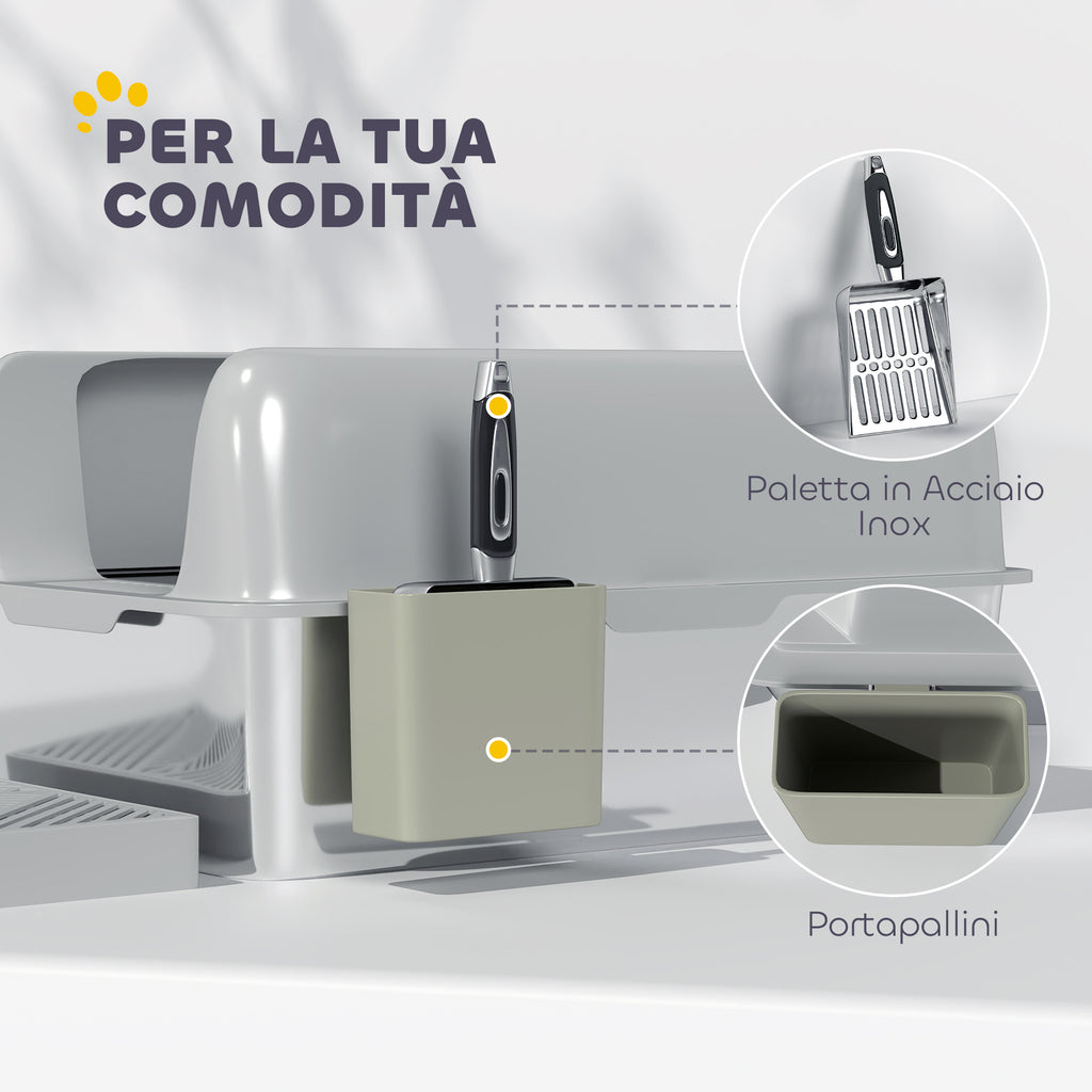 - ACCESSORI INCLUSI: La confezione della nostra toilette per gatti include una paletta in acciaio inox e una scatola portaoggetti, utile per avere sempre a disposizione tutto il necessario per una manutenzione veloce ed efficiente