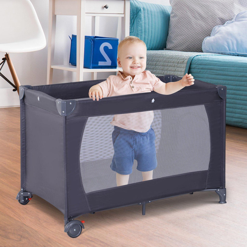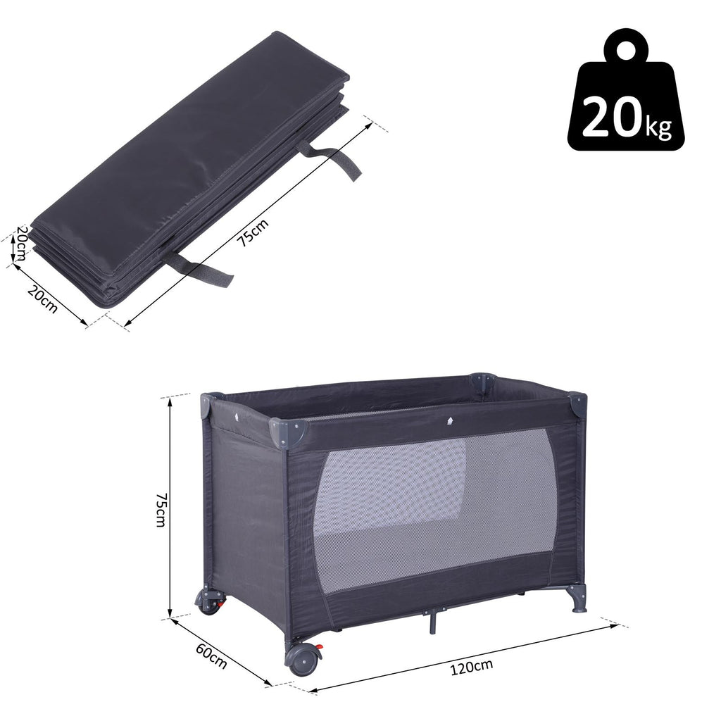 Lettino da Viaggio per Bambini Pieghevole con Borsa e Materassino in Tessuto Oxford Grigio Scuro