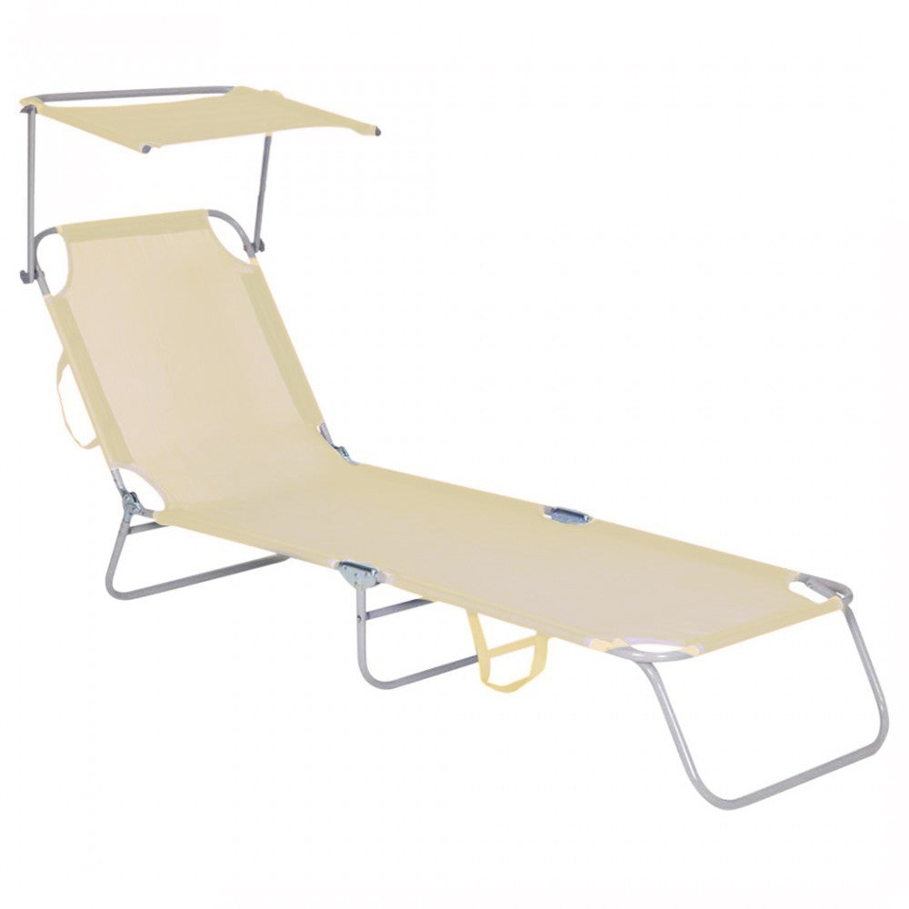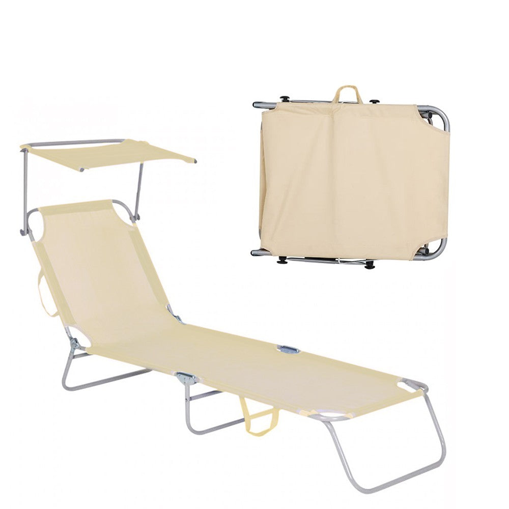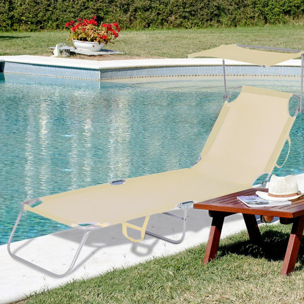 Lettino in Textilene Schienale Regolabile e Tettuccio Parasole Beige