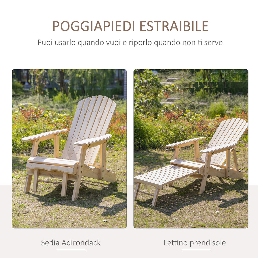Lettino Prendisole Adirondack in Legno da Giardino con Poggiapiedi
