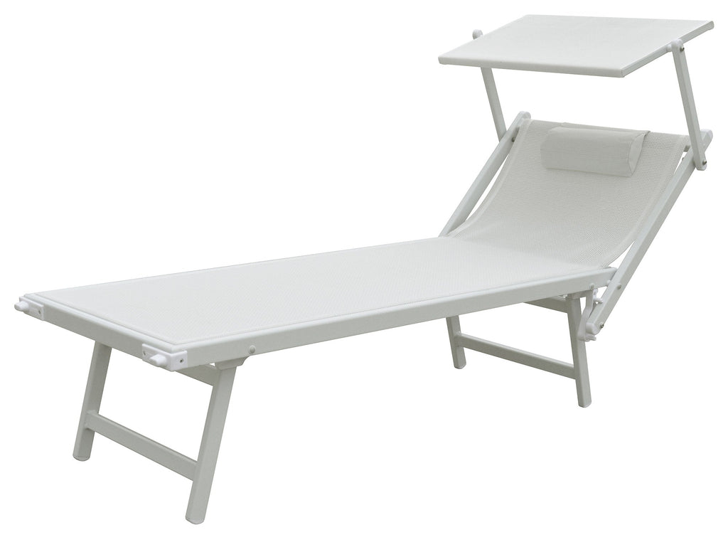 Lettino Prendisole da Giardino 185x61x39,5 cm Telaio in Alluminio Bianco e Textilene Bianco