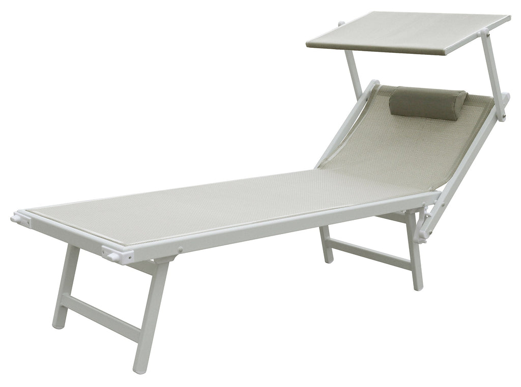 Lettino Prendisole da Giardino 185x61x39,5 cm Telaio in Alluminio Bianco e Textilene Grigio