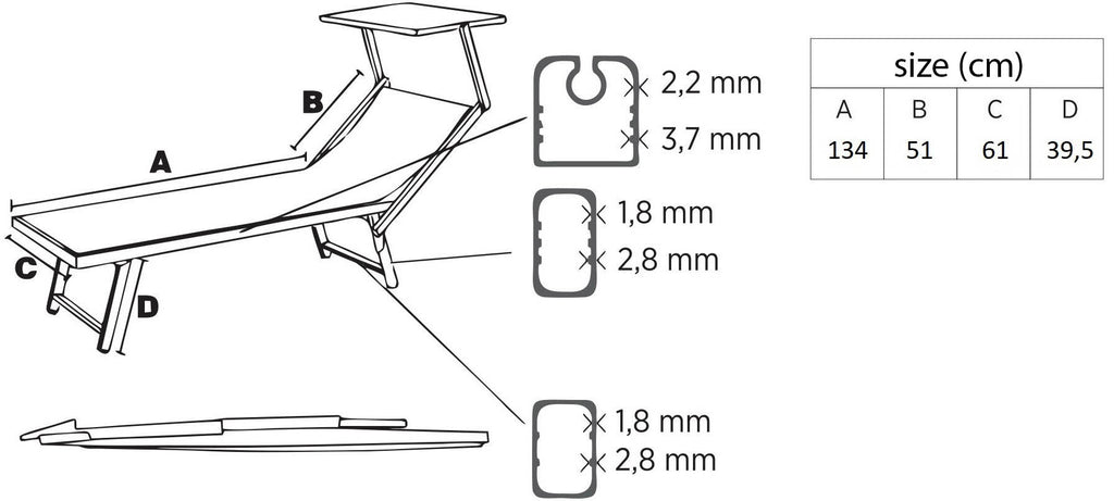 - Profili da 2,2 mm più nervature da 1,5 mm