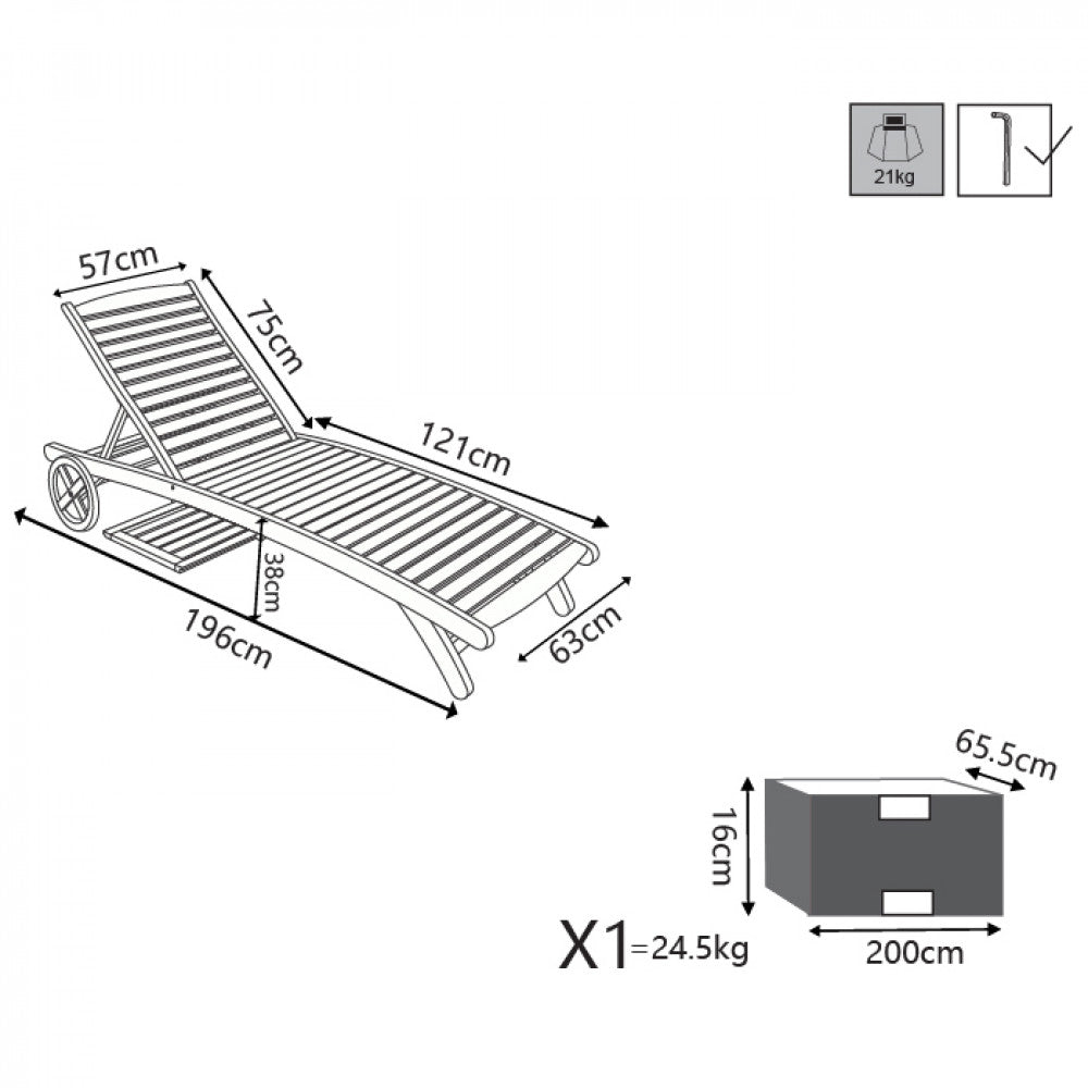 Lettino Prendisole da Giardino con Ruote 197x63x37/100 h cm in Legno Marrone