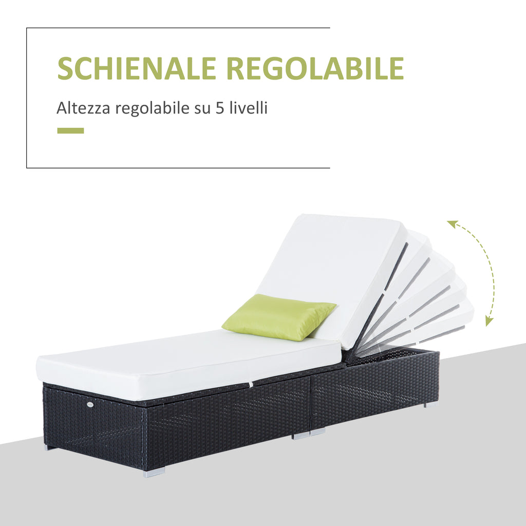 Lettino Prendisole da Giardino di Lusso in PE Rattan e Alluminio Nero