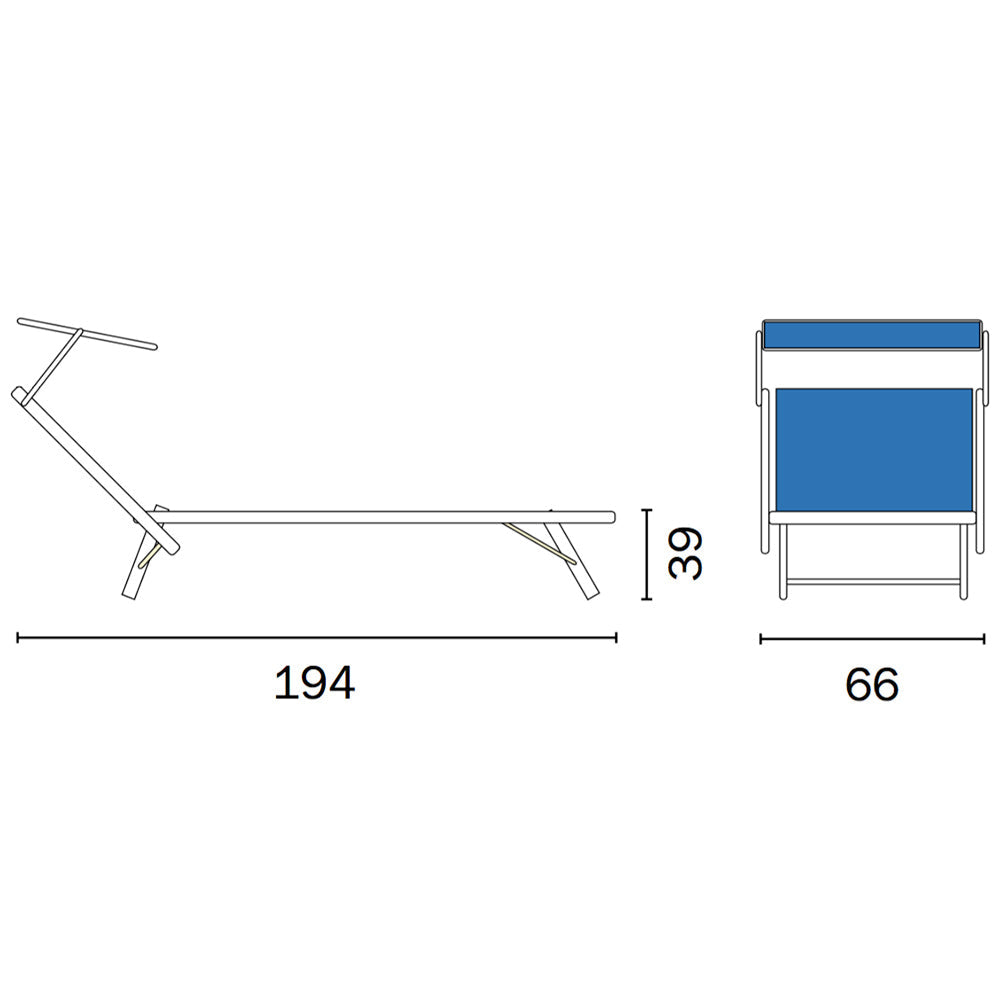 Lettino Prendisole da Esterno in Alluminio con Tettuccio Vorghini Mare Blu Reclinabile