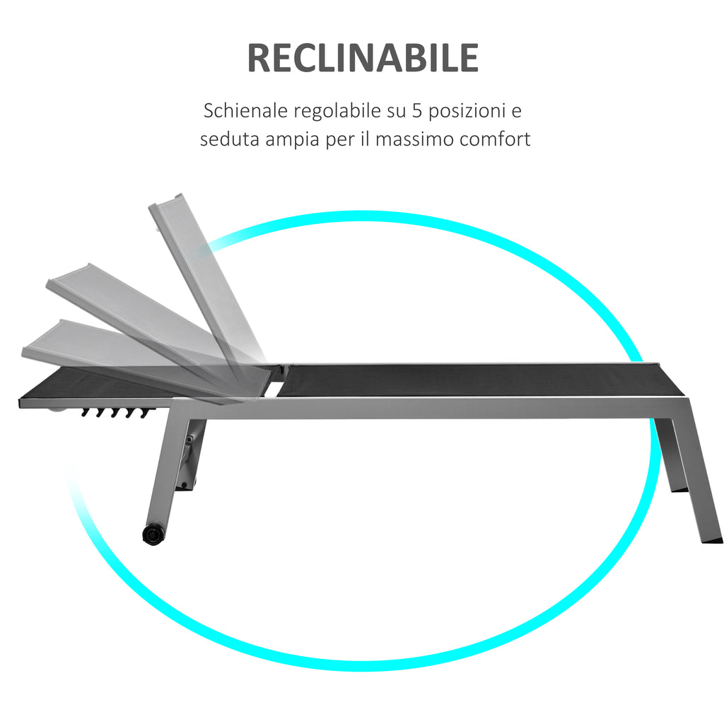 Lettino Prendisole da Giardino in Textilene 169x65x102 cm UV-A Grigio