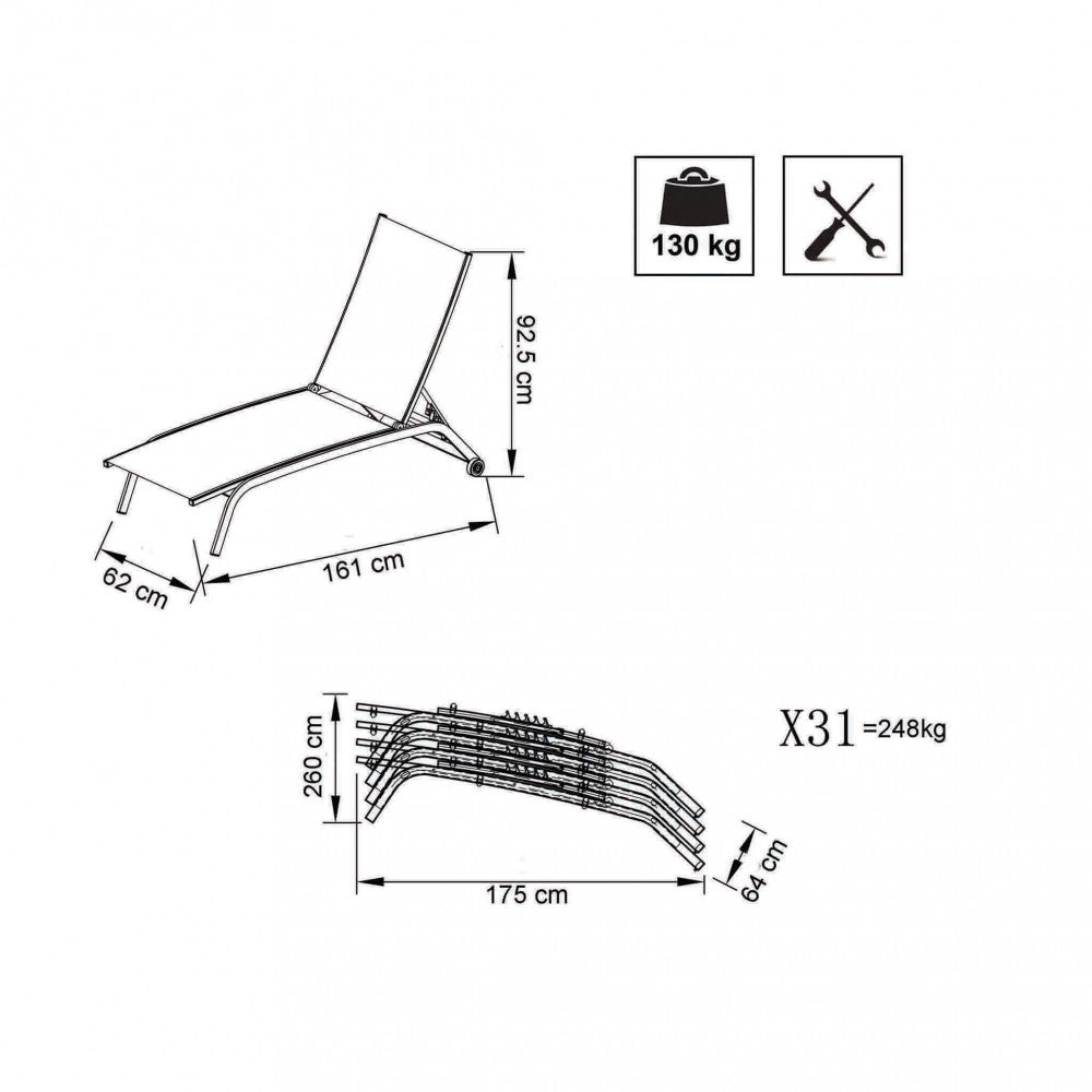 Lettino Prendisole da Giardino Itaca Impilabile 194x71x83 h cm in Textilene Verde