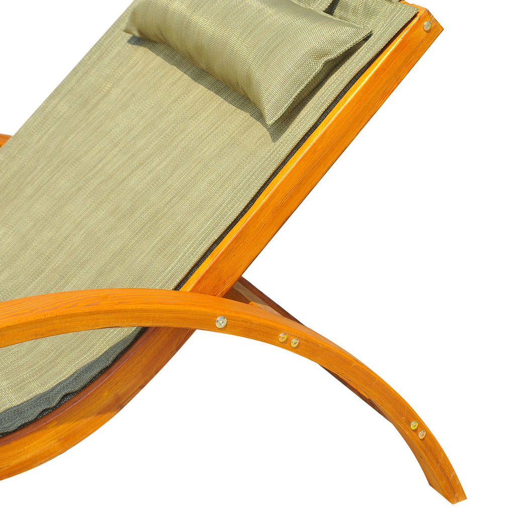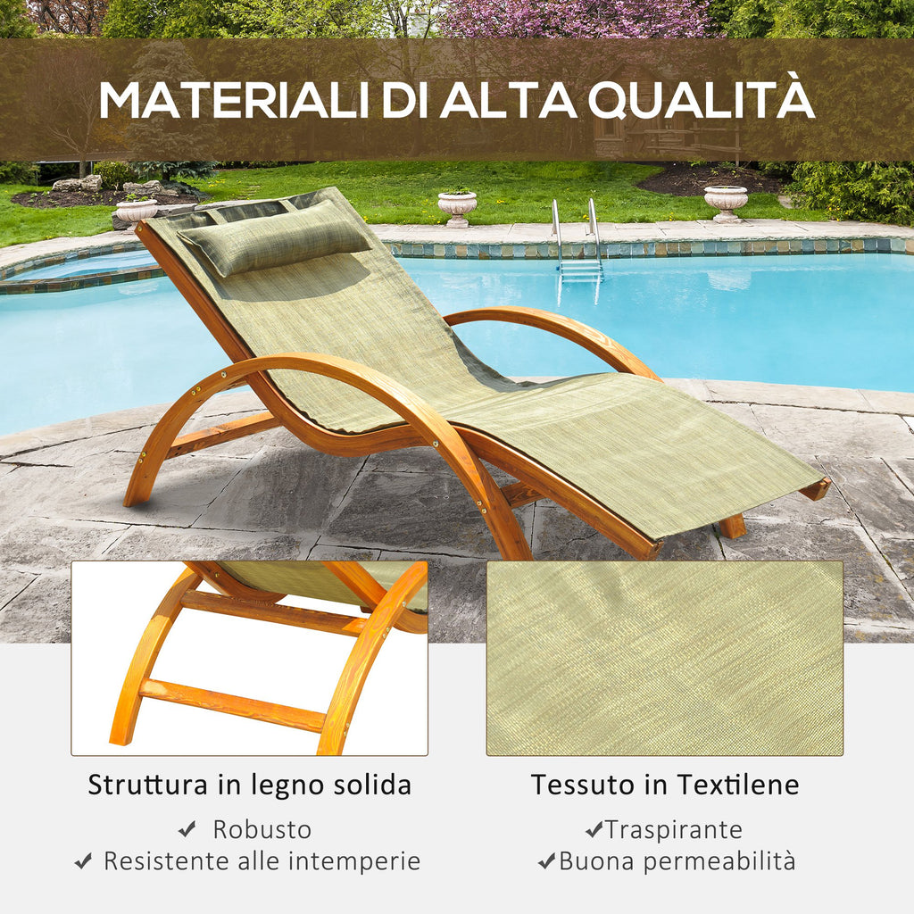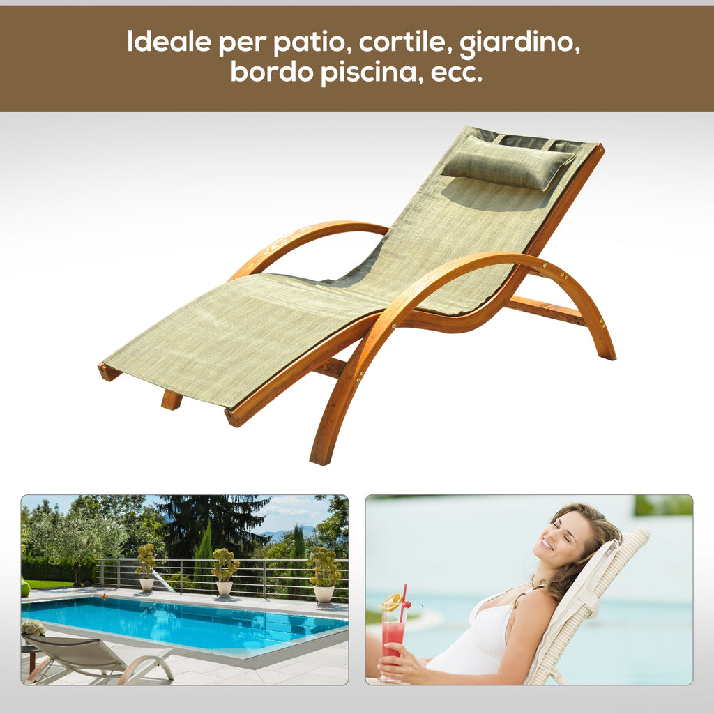 Lettino Prendisole Ergonomico in Legno con Materassino e Poggiatesta Marrone