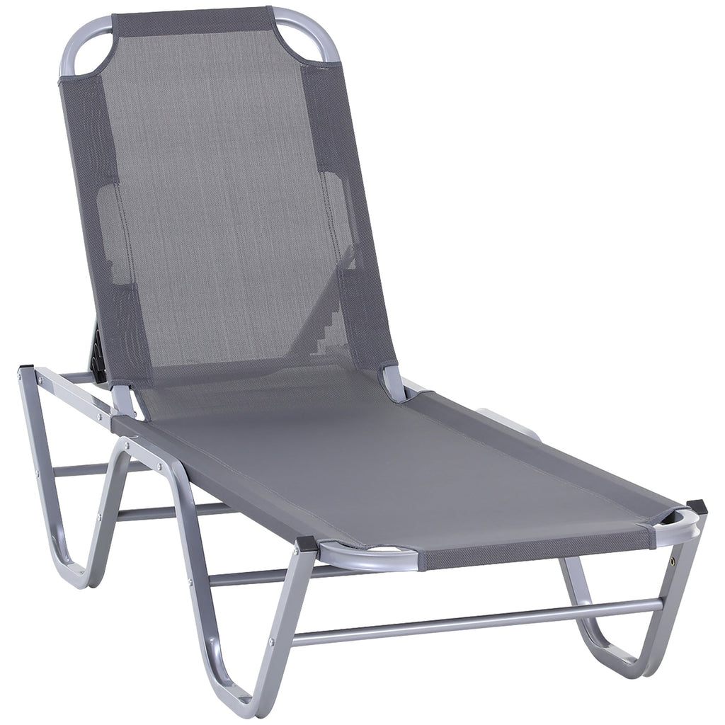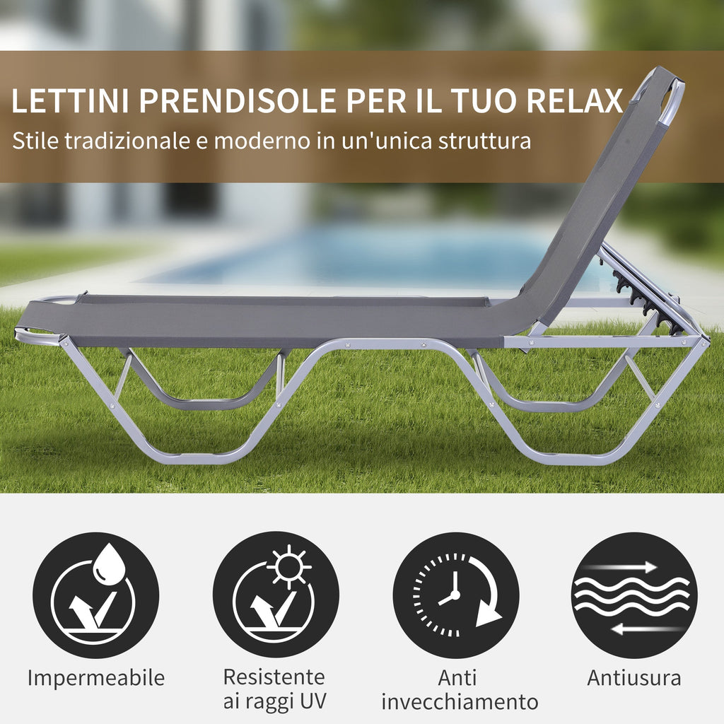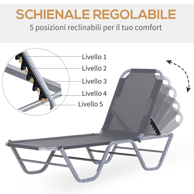 Lettino Prendisole in Alluminio con Schienale Reclinabile a 5 Livelli 163x58,5x91 cm Argento