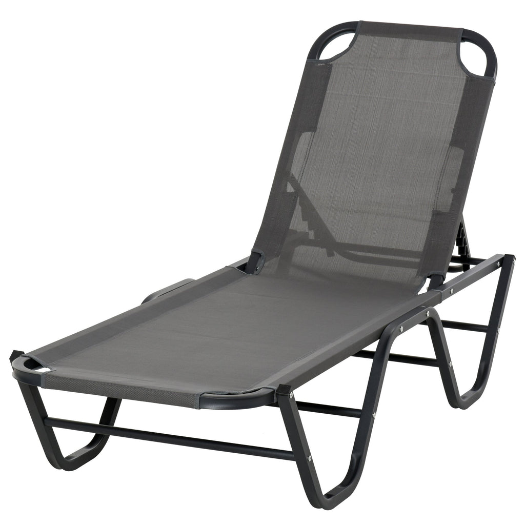 Lettino Prendisole in Alluminio con Schienale Reclinabile a 5 Livelli 163x58,5x91 cm Grigio