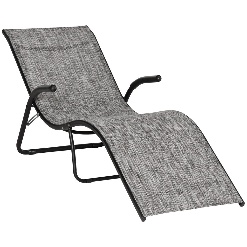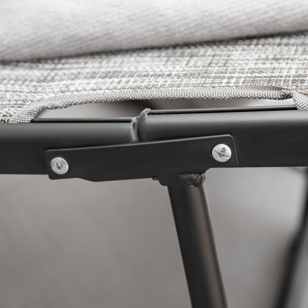 Goditi il tempo libero all'aperto con questa sedia a sdraio relax di ! La combinazione del telaio nero con sedile grigio rende questo lettino prendisole semplice ed elegante, aggiungendo un tocco chic ai tuoi esterni. Il design pieghevole è comodo per l'uso quotidiano e la forma ergonomica del lettino unita ai braccioli assicurano un comfort ottimale. Realizzata in tubo di metallo e tessuto a rete traspirante, la chaise longue ti accompagna in ogni momento di relax.