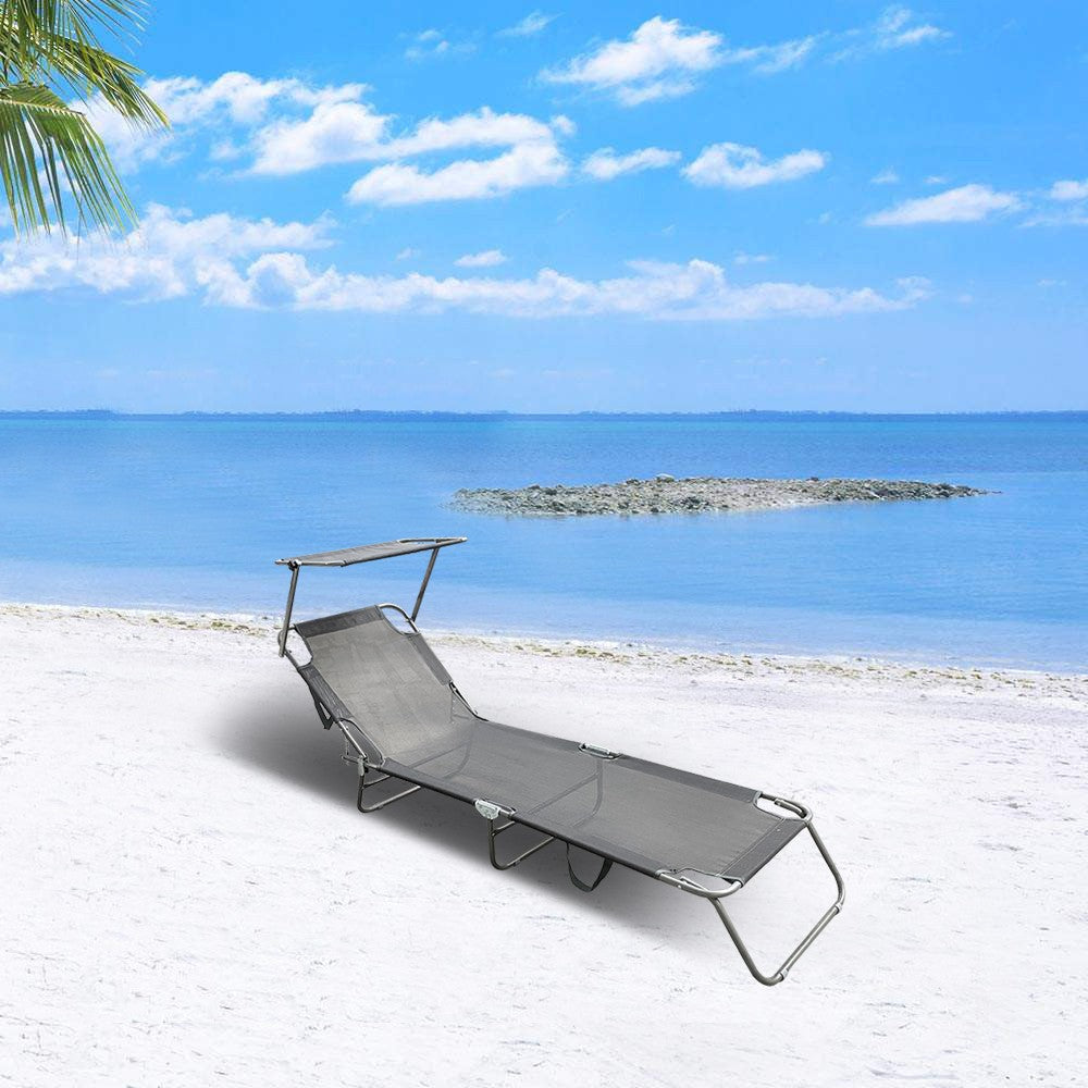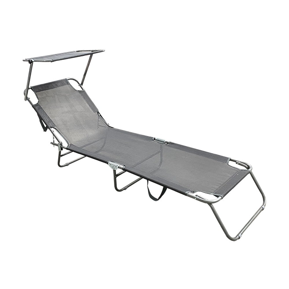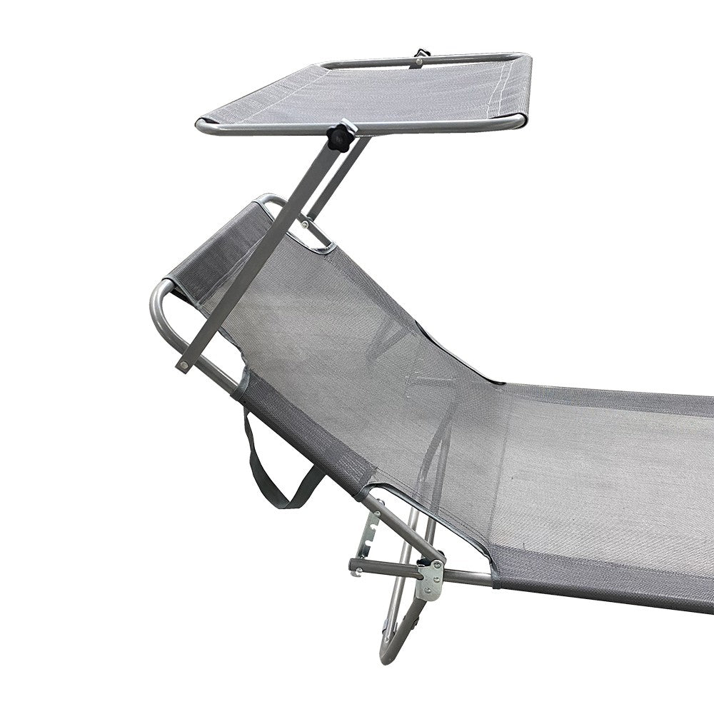 Lettino Prendisole Pieghevole con Schienale Regolabile e Parasole Grigio