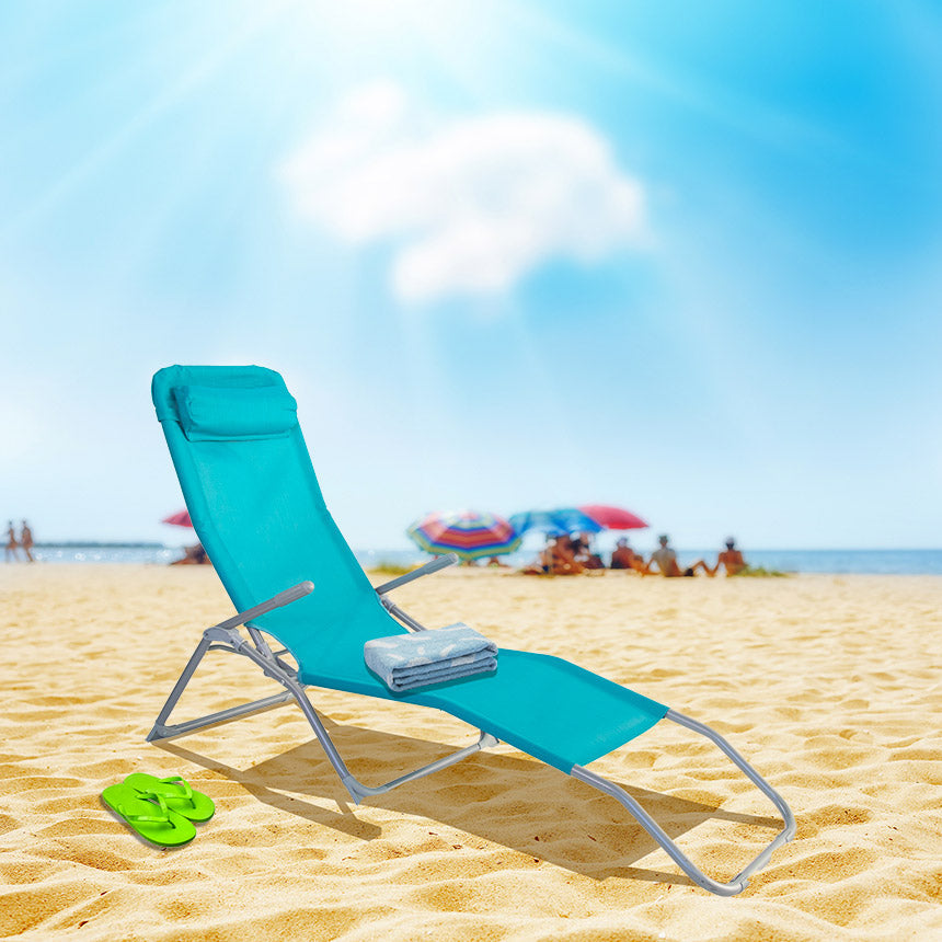 Lettino Prendisole Pieghevole da Giardino 151x60x93 cm in Acciaio e Textilene Turchese